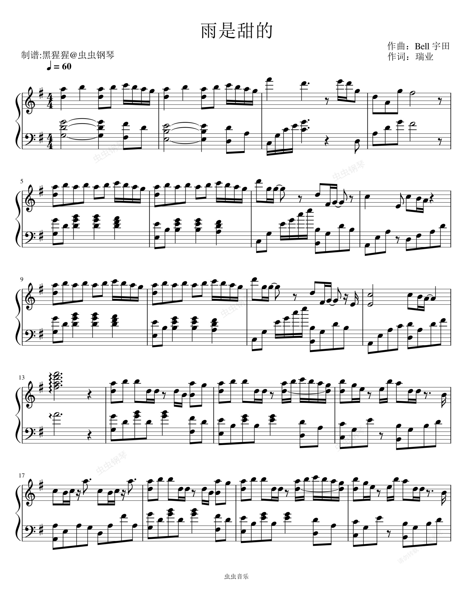 钢琴谱:Bell 宇田-G调 《雨是甜的》