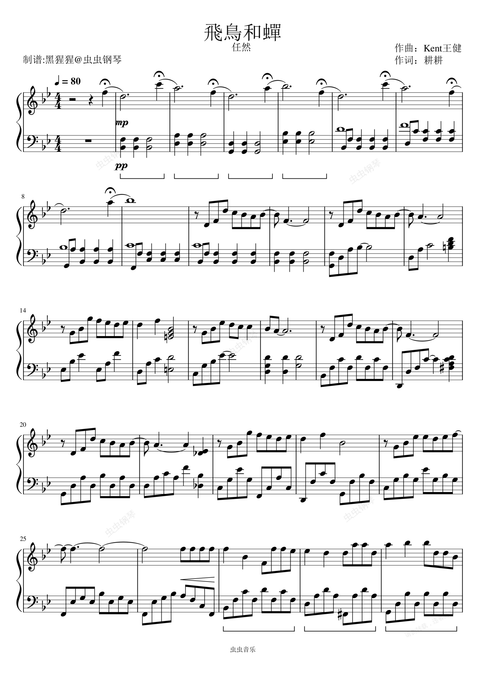 钢琴谱:任然-Bb调 《飞鸟和蝉》