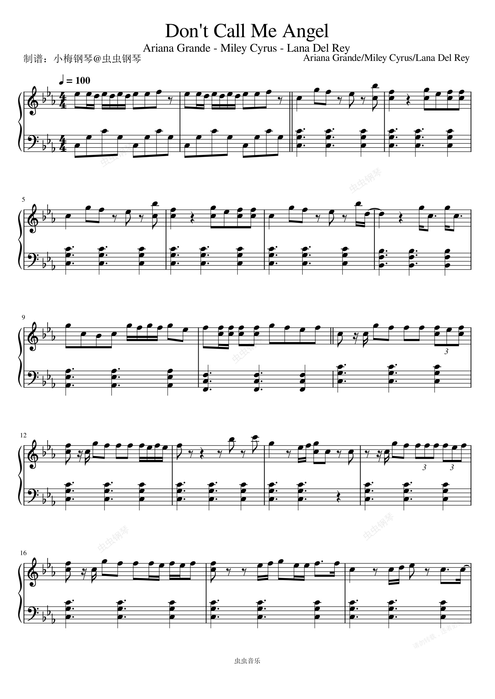 钢琴谱:Don't Call Me Angel (Charlie's Angels) - Ariana Grande/Miley Cyrus/Lana Del Rey Ariana Grande/Lana Del Rey/Miley Cyrus