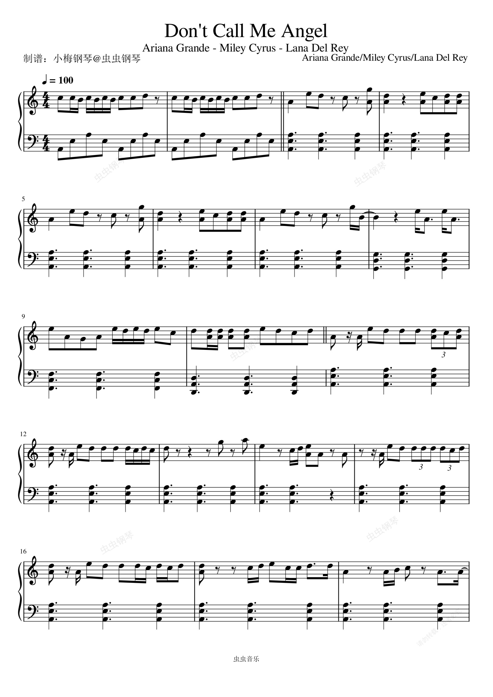 钢琴谱:Don't Call Me Angel (Charlie's Angels) - Ariana Grande/Miley Cyrus/Lana Del Rey Ariana Grande/Lana Del Rey/Miley Cyrus
