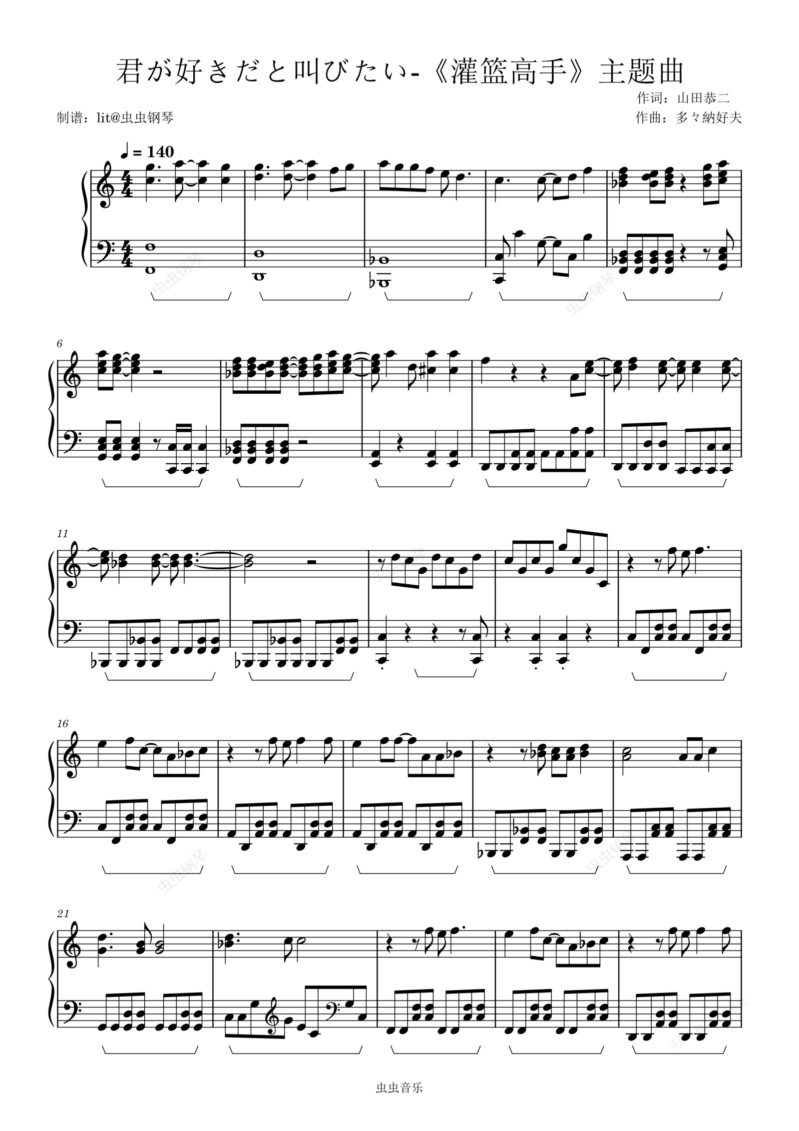 钢琴谱:君が好きだと叫びたい-《灌篮高手》主题曲
