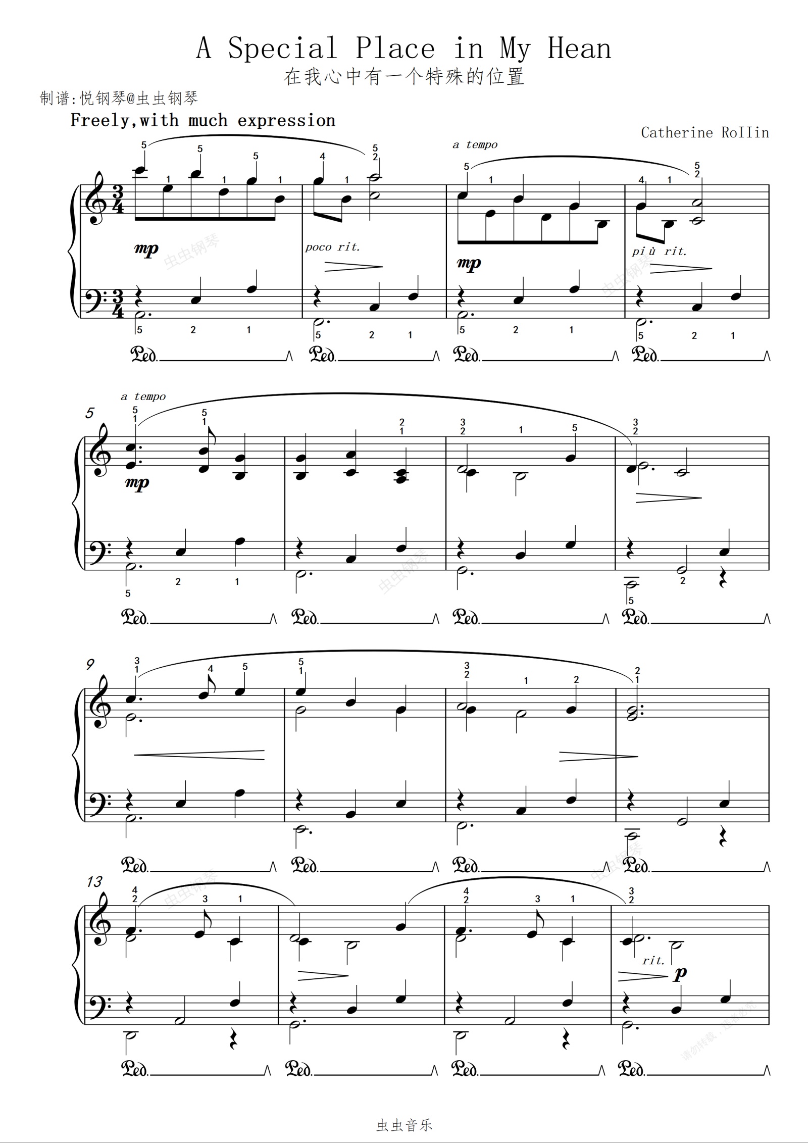 钢琴谱:在我心中有一个特别的地方//A SpecialPlace In My Heart【唯美-治愈】