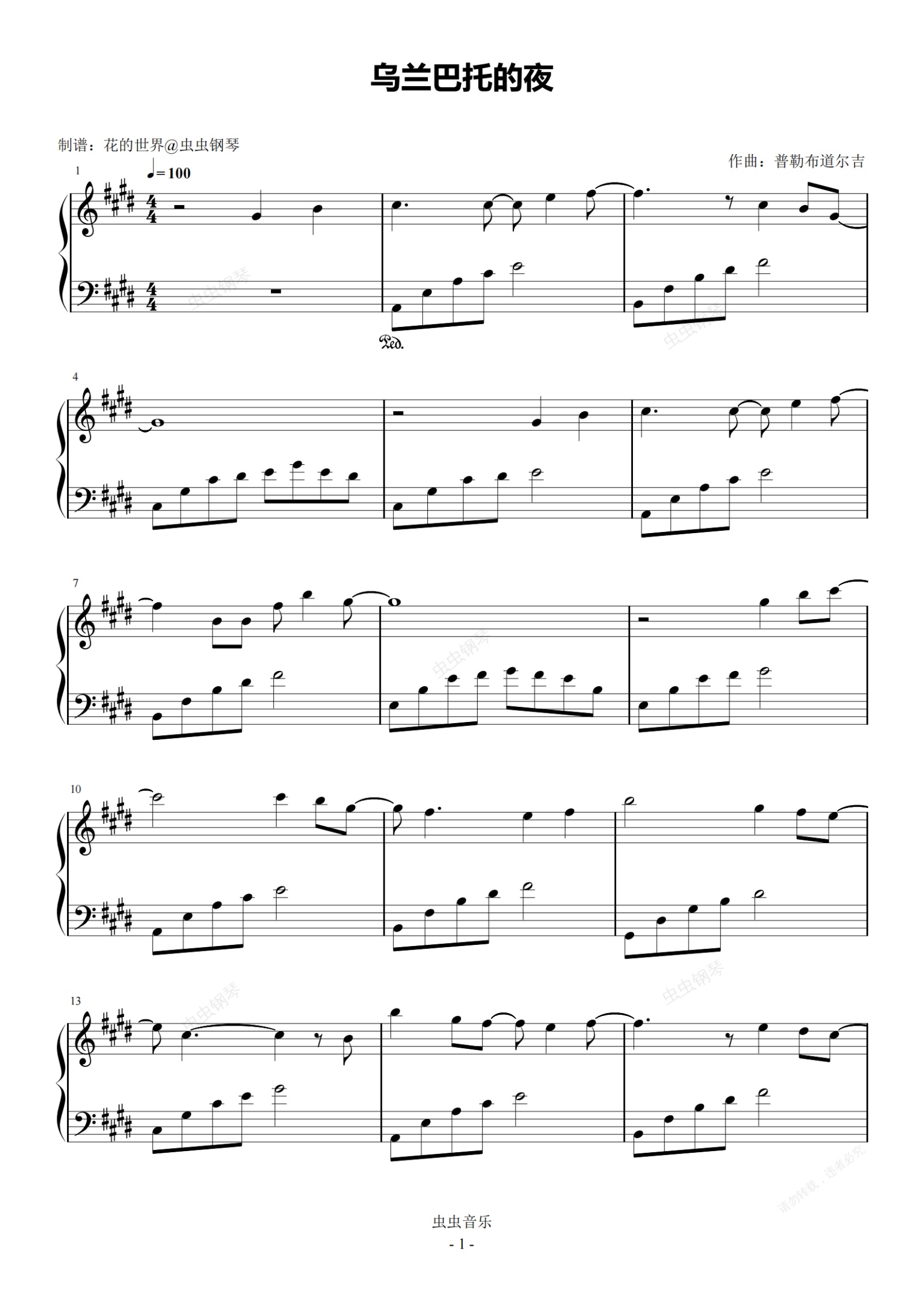 钢琴谱:乌兰巴托的夜 原调简易版 谭维维
