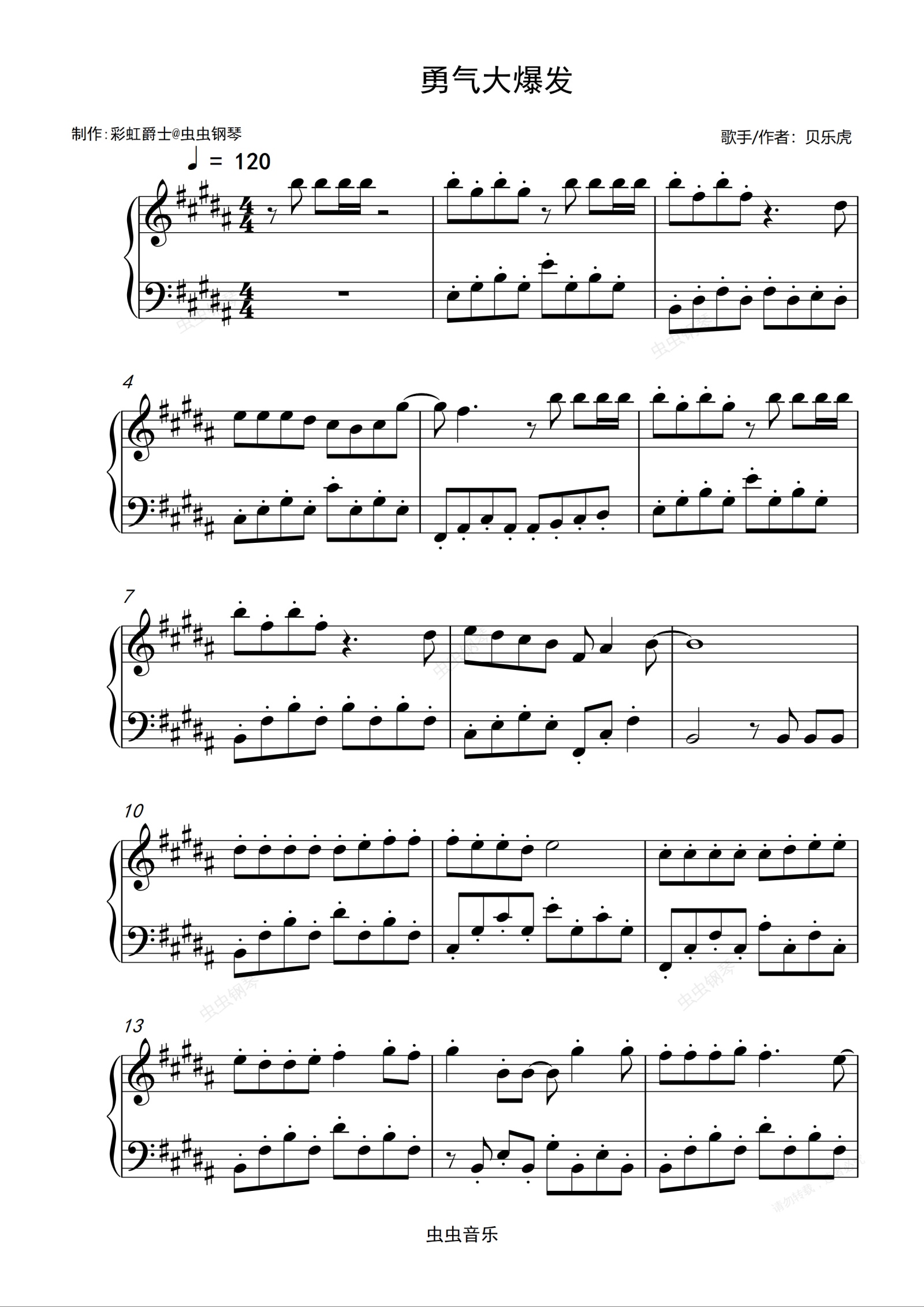 钢琴谱:勇气大爆发-原调完整版 钢琴谱 贝乐虎 土豆王国小乐队 奶糖乐团