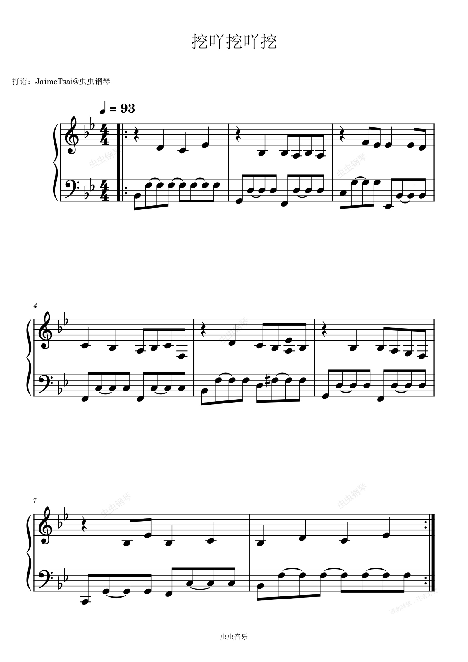 钢琴谱:挖呀挖呀挖