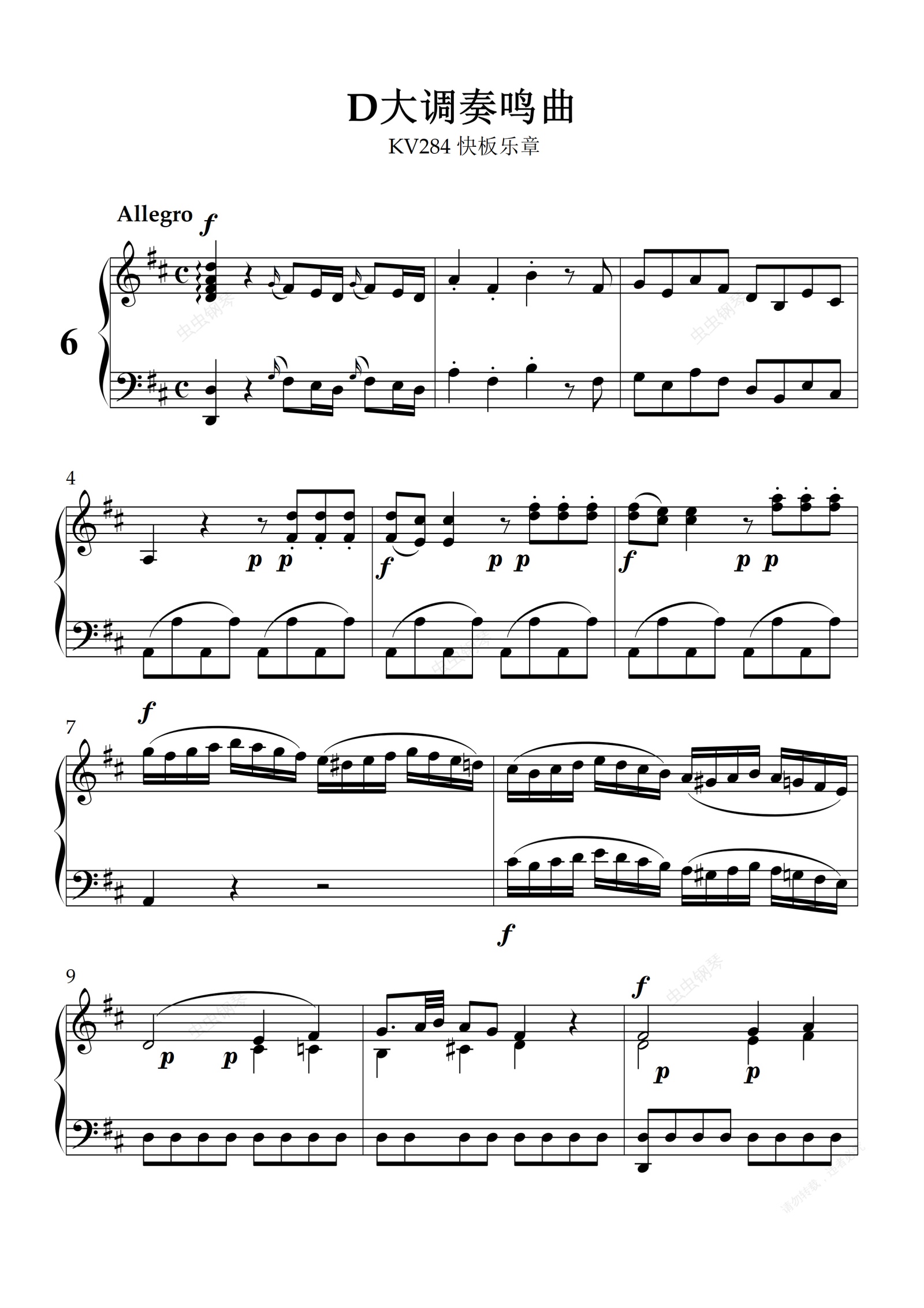 钢琴谱:D大调奏鸣曲 KV284 快板乐章