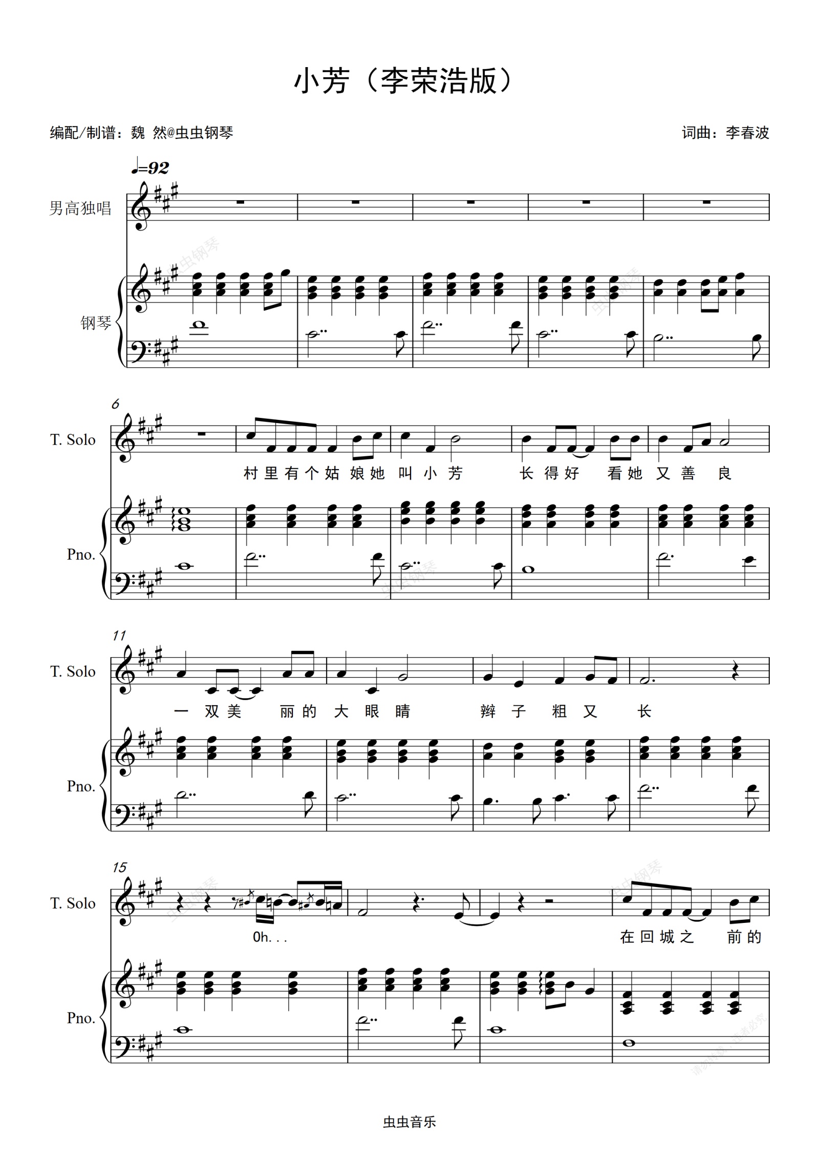 钢琴谱:小芳(李荣浩)超原版伴奏谱——『忧伤歌声』