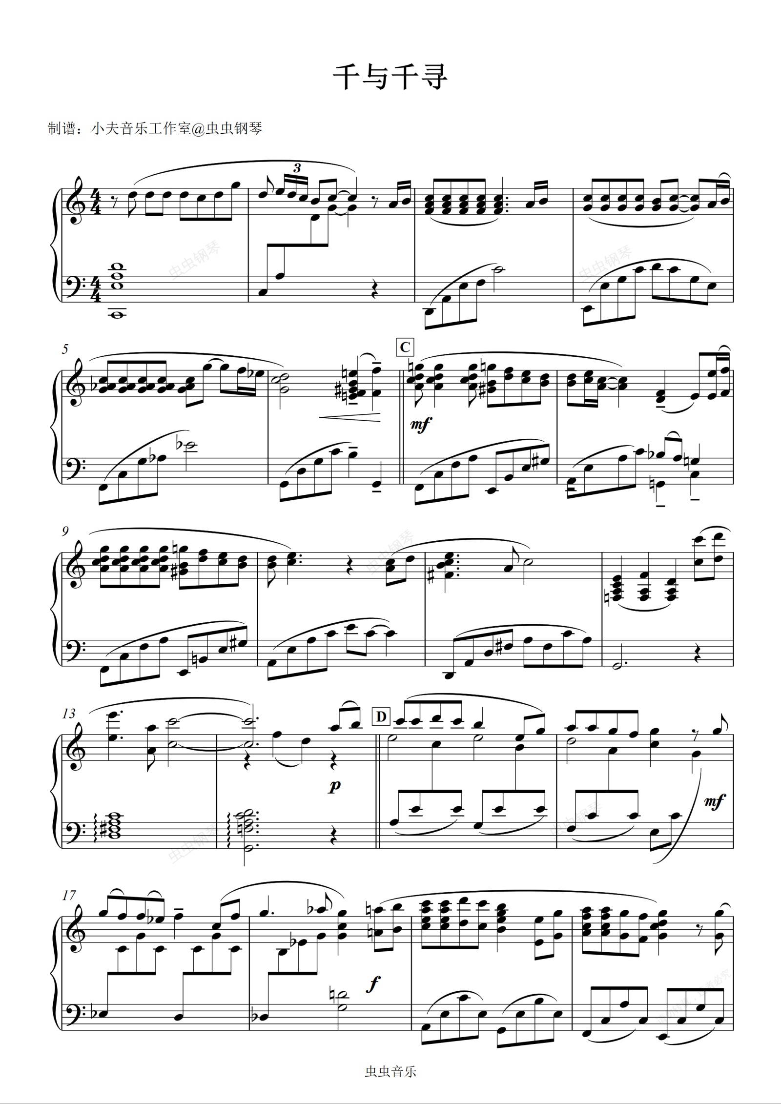 钢琴谱:千与千寻 片段