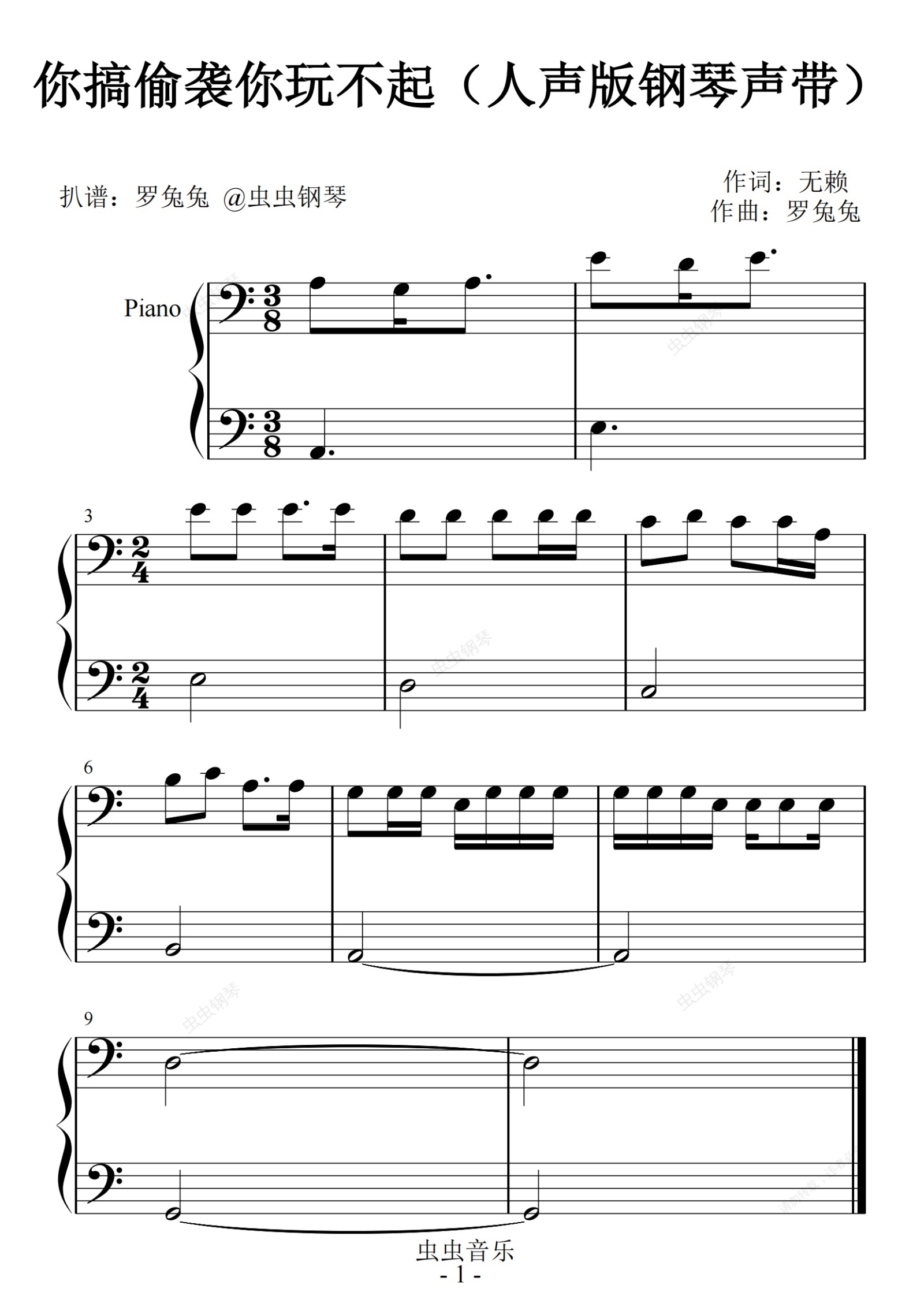 钢琴谱:你搞偷袭你玩不起(人声版钢琴声带)