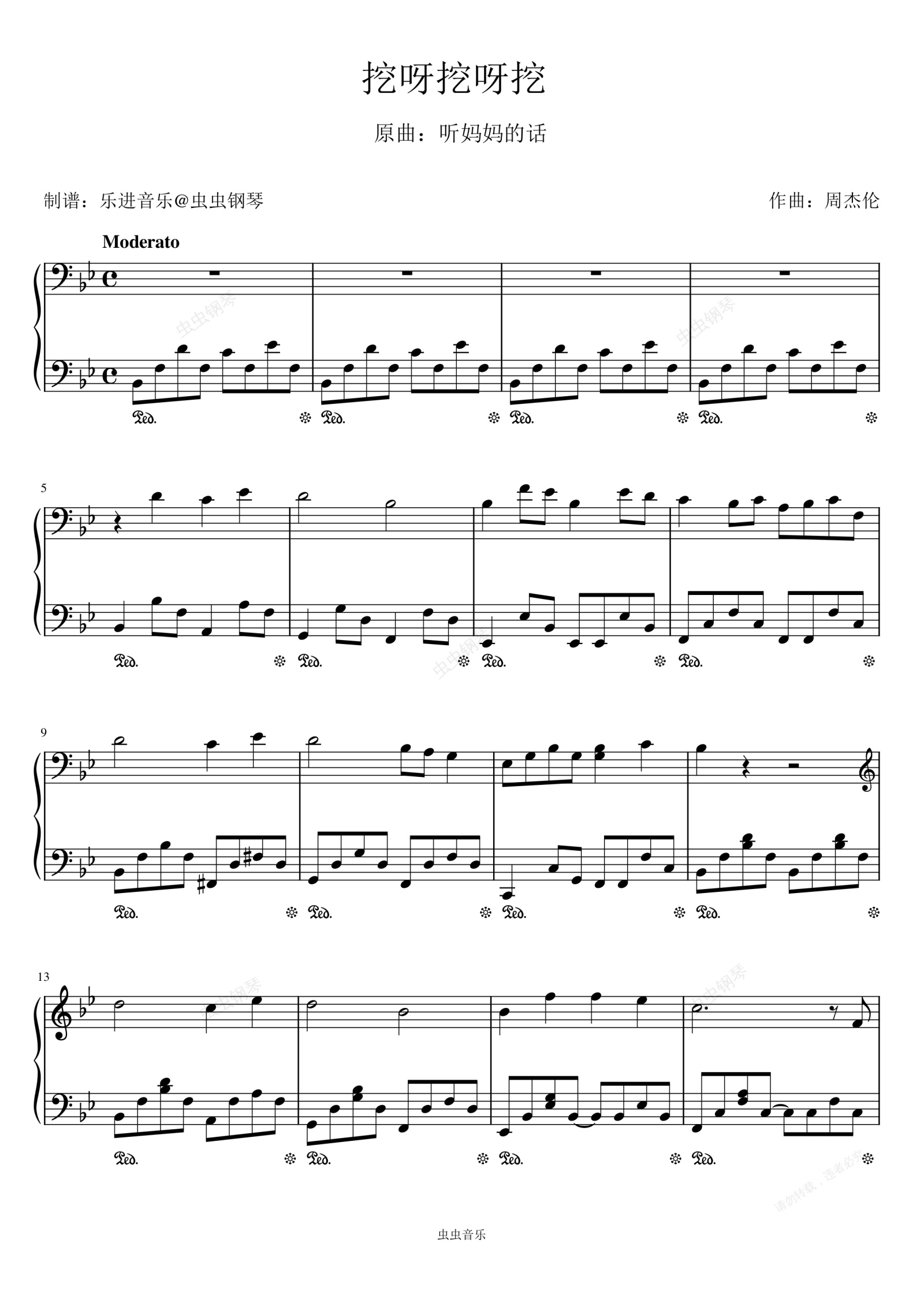 钢琴谱:挖呀挖呀挖(小小花园) 原曲听妈妈的话