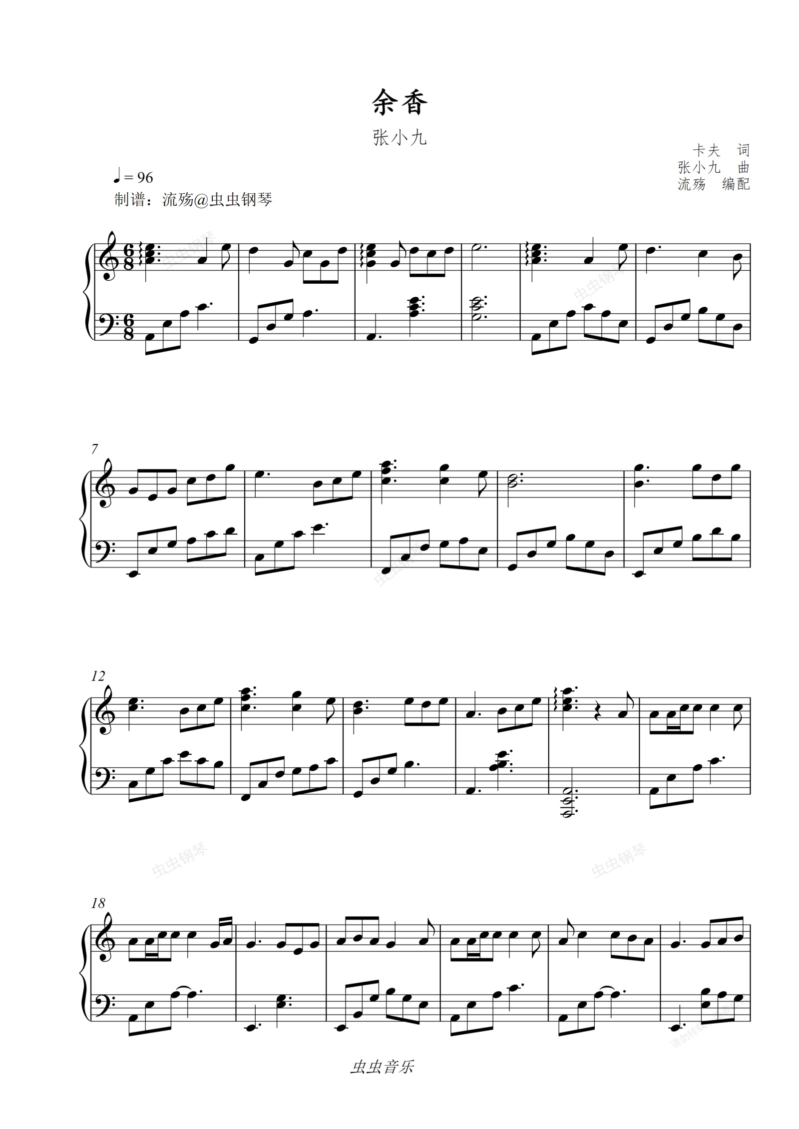 钢琴谱:余香(C调版)