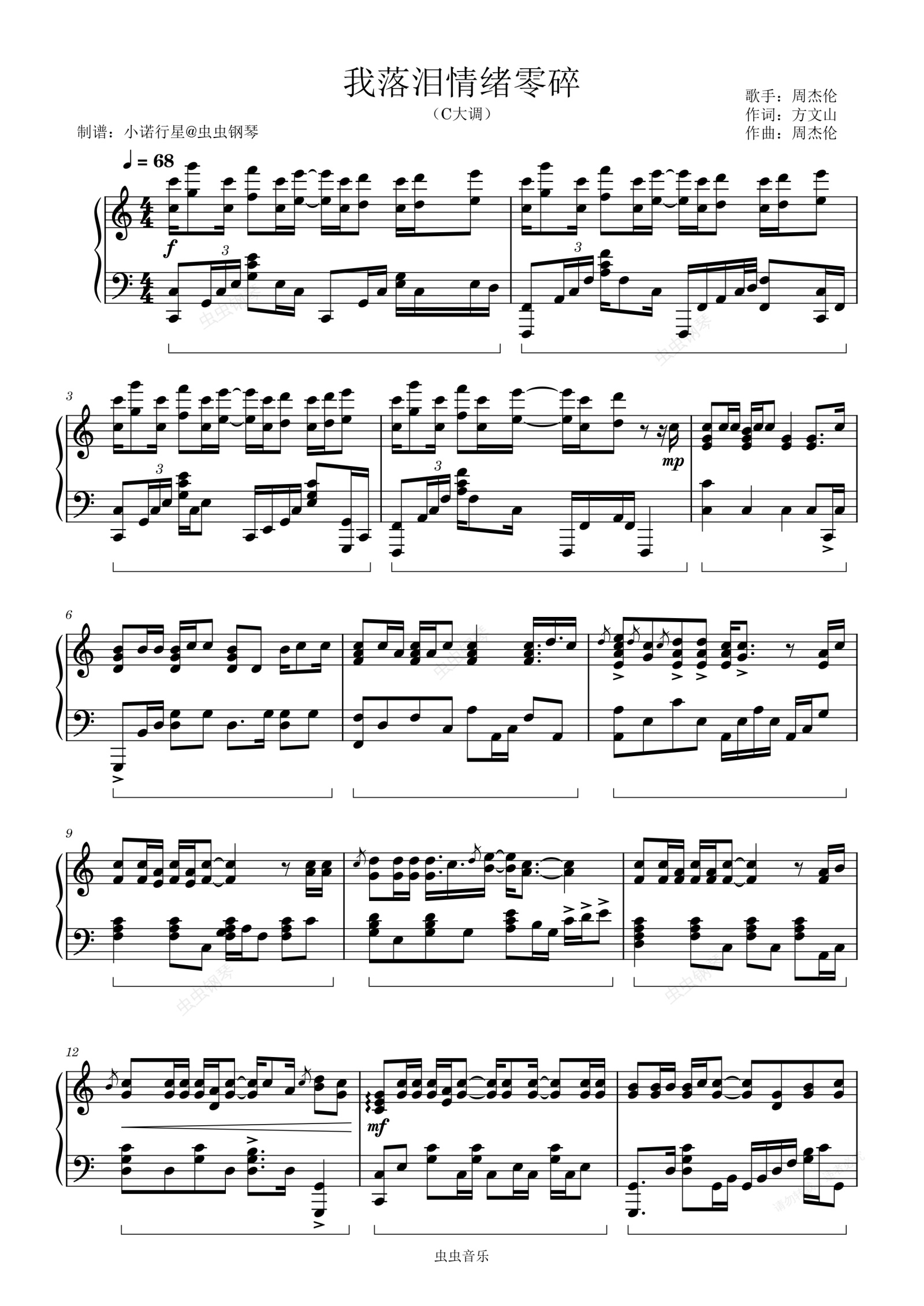 钢琴谱:我落泪情绪零碎-C调高度还原