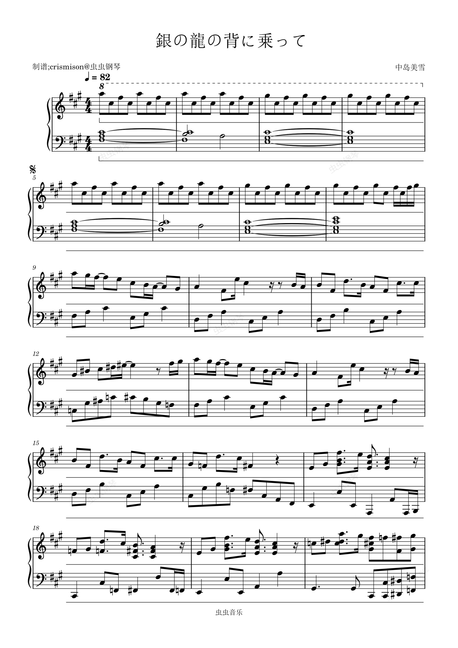 钢琴谱:銀の龍の背に乗って(骑在银龙的背上)