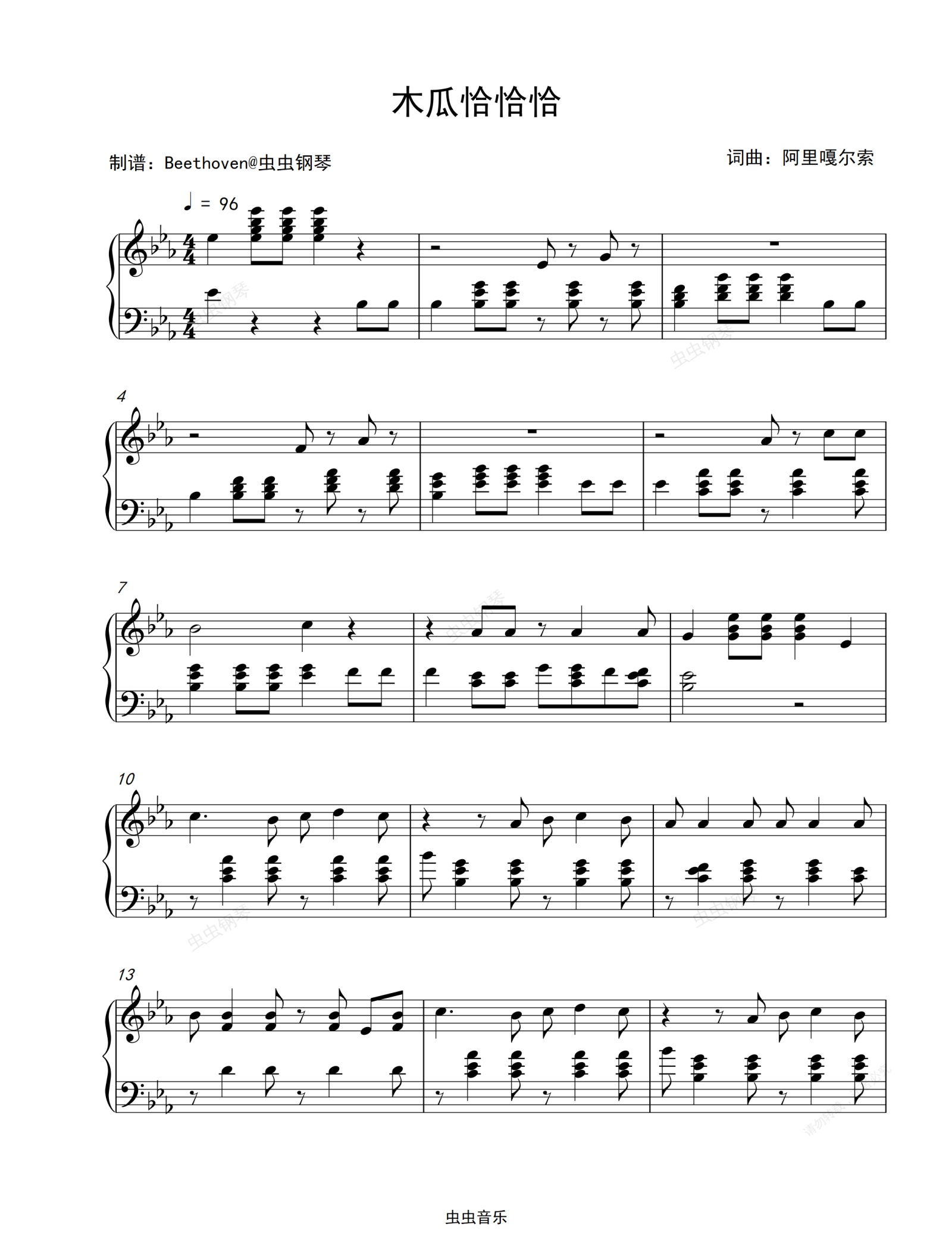 钢琴谱:木瓜恰恰恰-宝宝巴士儿歌