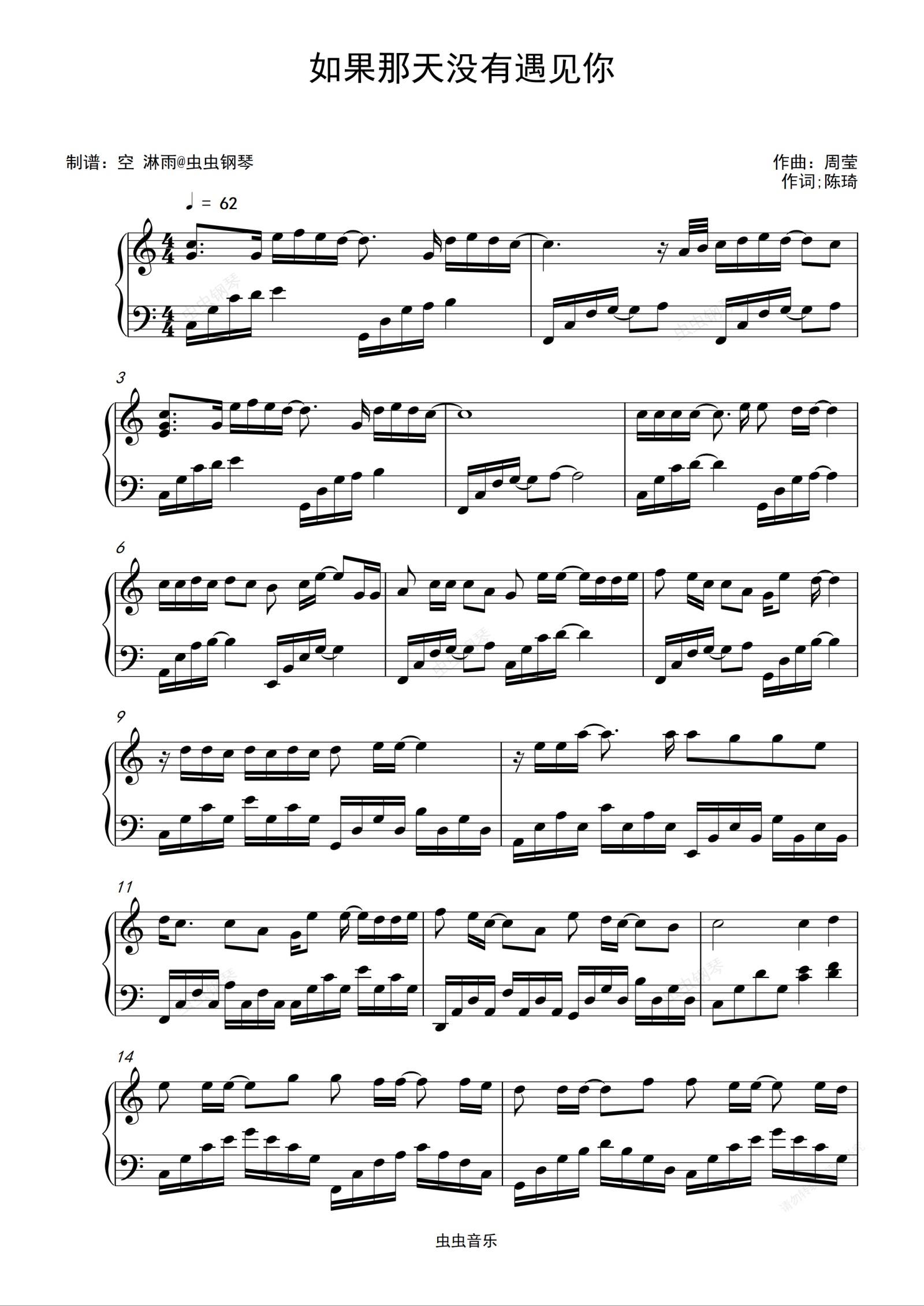 钢琴谱:如果那天没有遇见你 安以轩