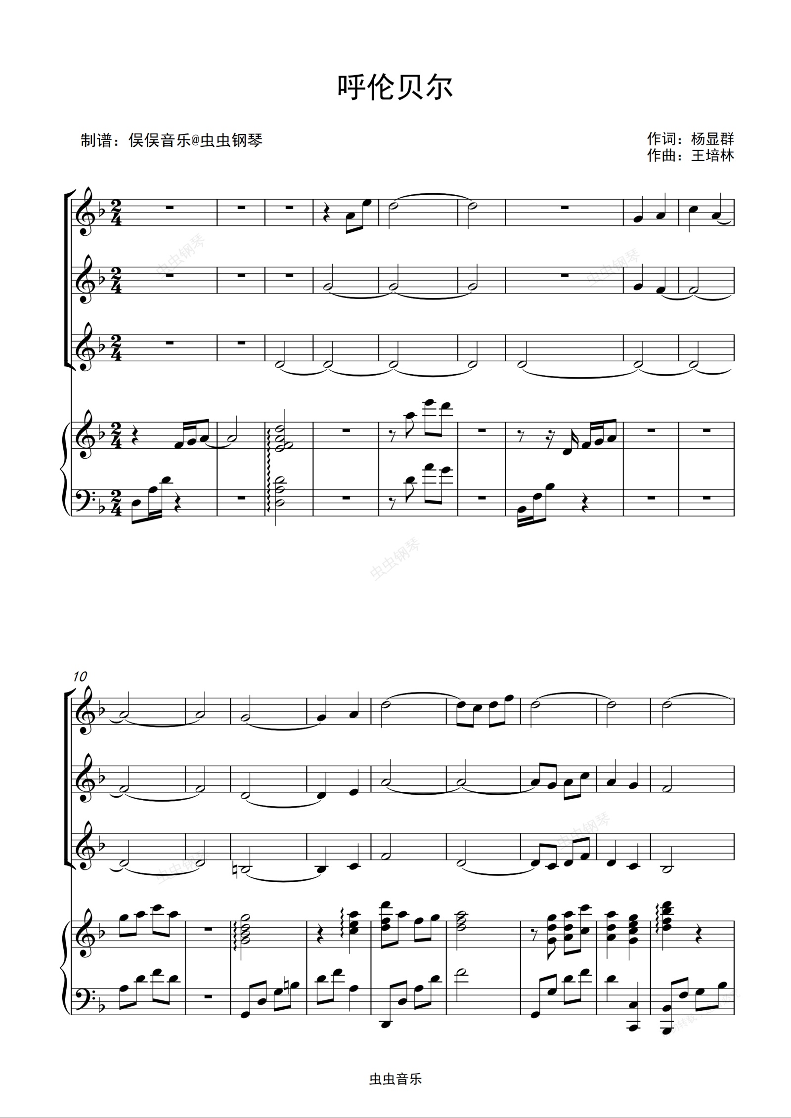 钢琴谱:呼伦贝尔 - 合唱伴奏谱