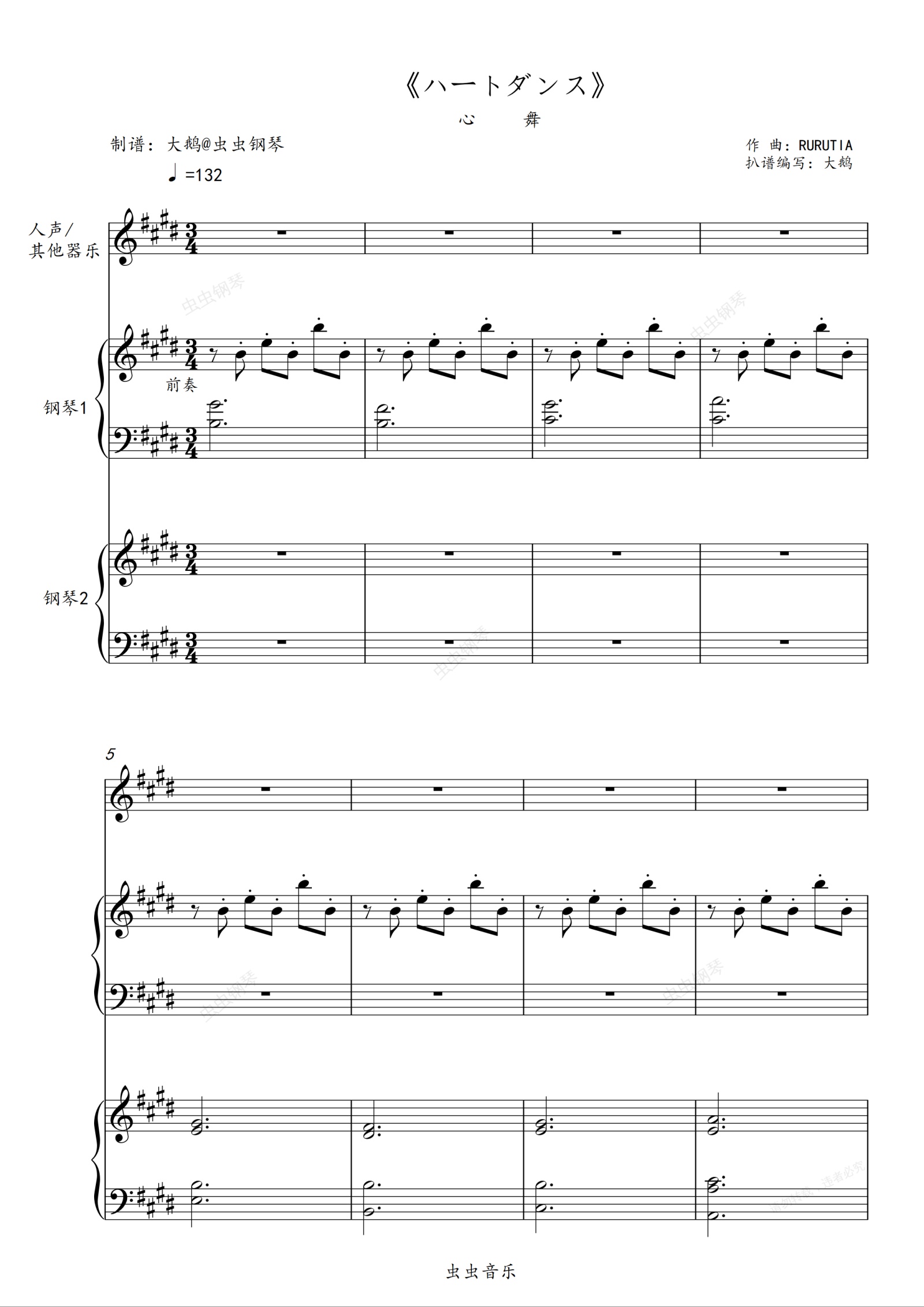 钢琴谱:RURUTIA《ハートダンス》心之舞/唯美双钢+人声(器乐)
