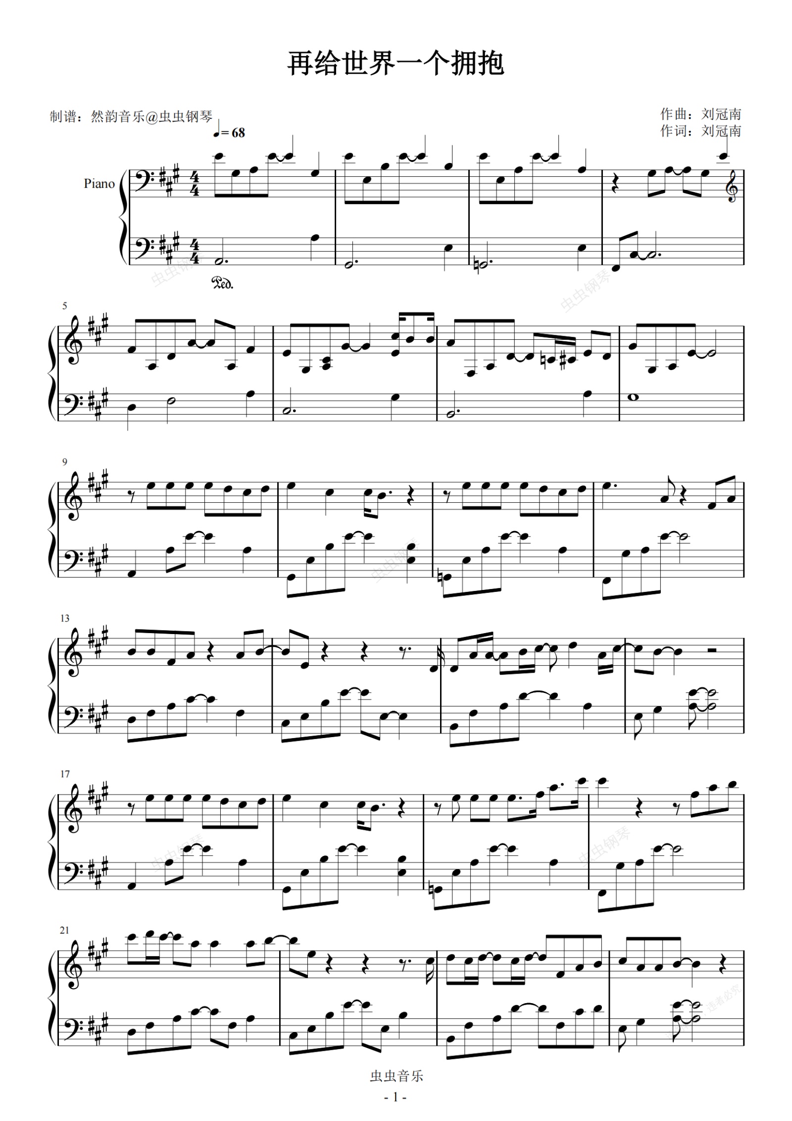 钢琴谱:【原调】再给世界一个拥抱-Fine乐团 钢琴还原独奏版