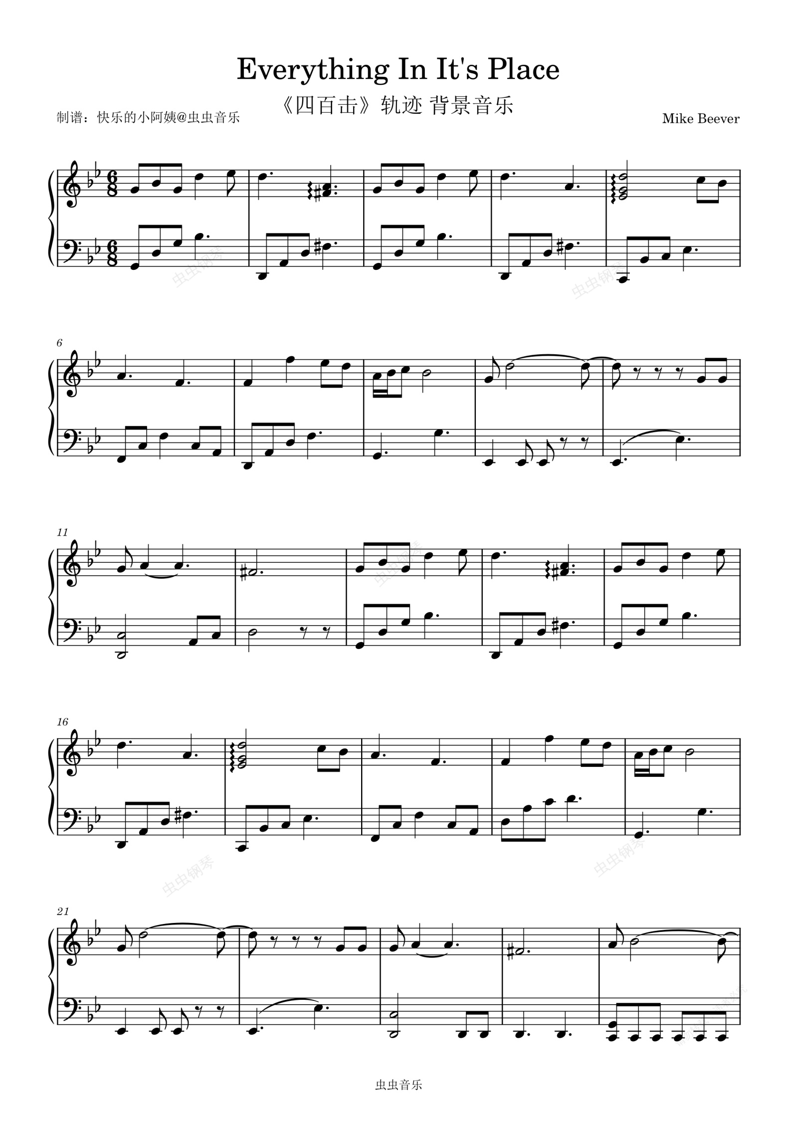 钢琴谱:Everything In It's Place - 萧逸《四百击》轨迹背景音乐