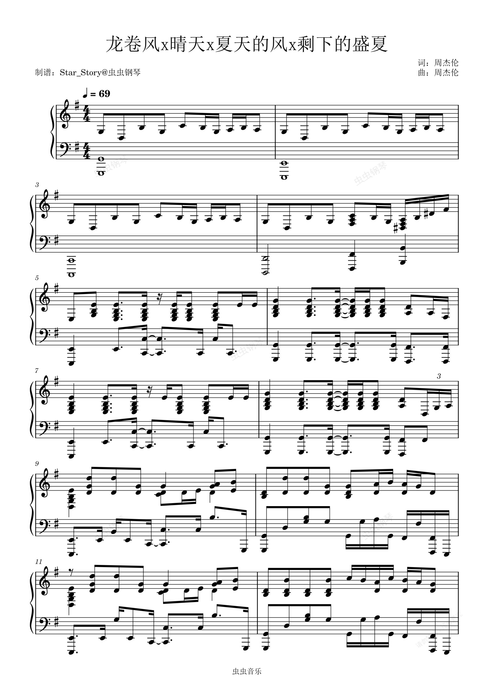 钢琴谱:在剩下的盛夏的晴天,刮起了夏天的龙卷风