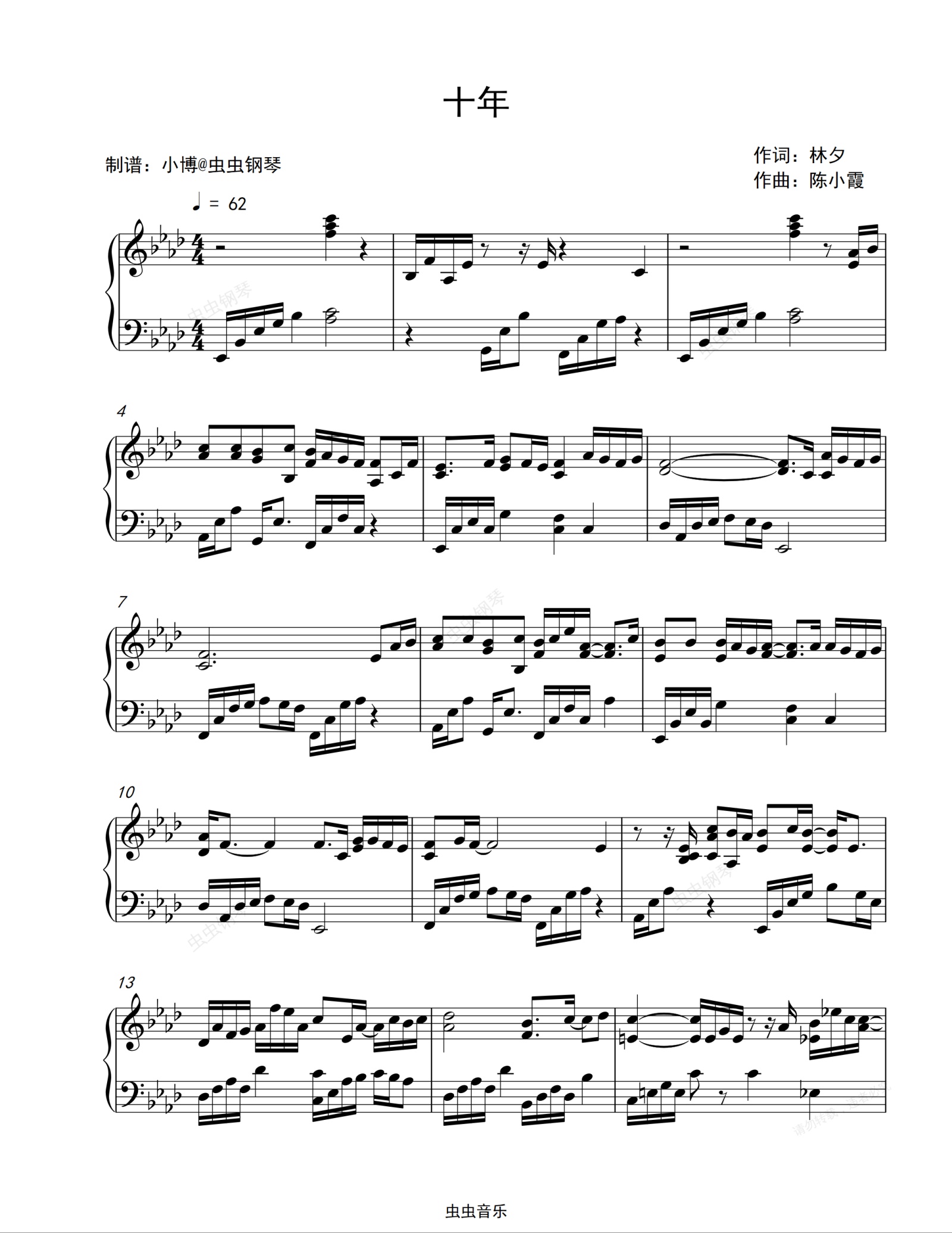 钢琴谱:十年-陈奕迅