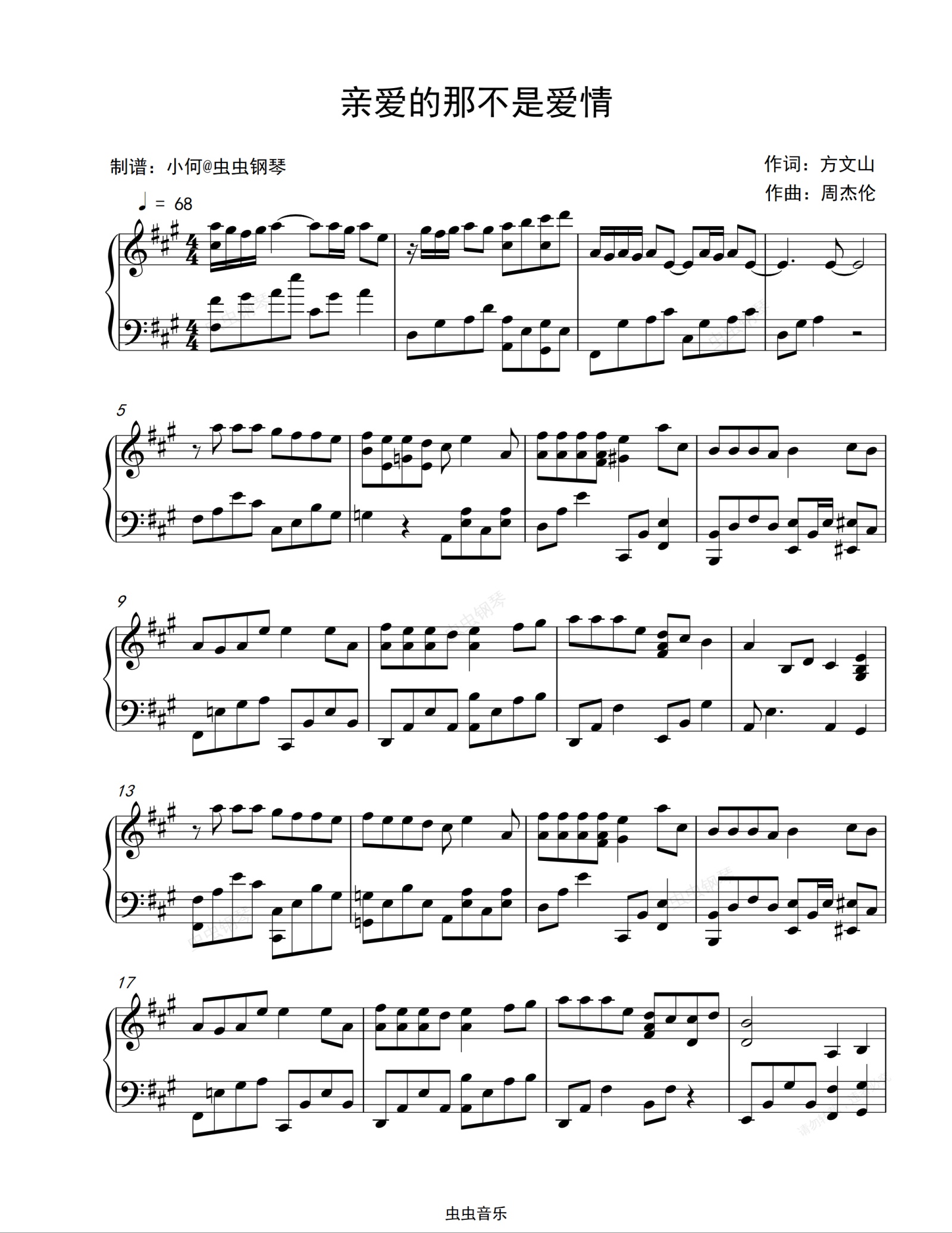 钢琴谱:亲爱的那不是爱情-张韶涵