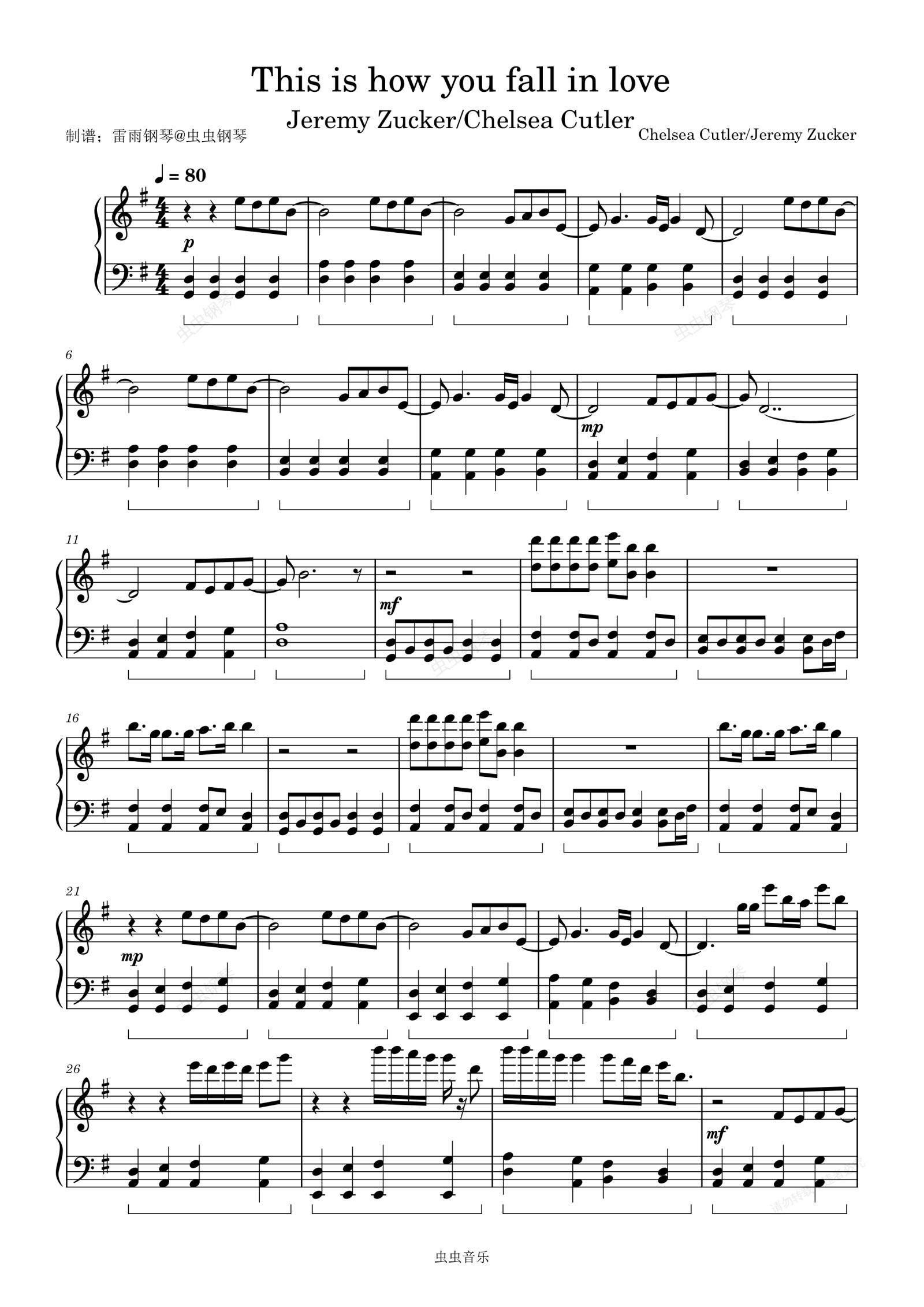 钢琴谱:this is how you fall in love - Jeremy Zucker/Chelsea Cutler