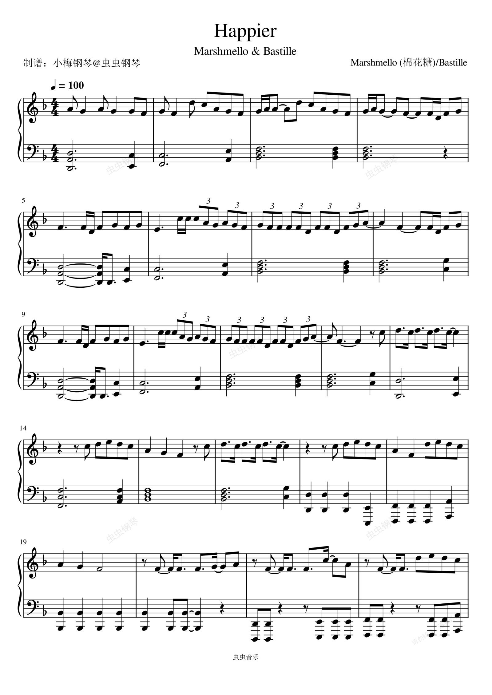 钢琴谱:Happier - Marshmello (棉花糖)/Bastille