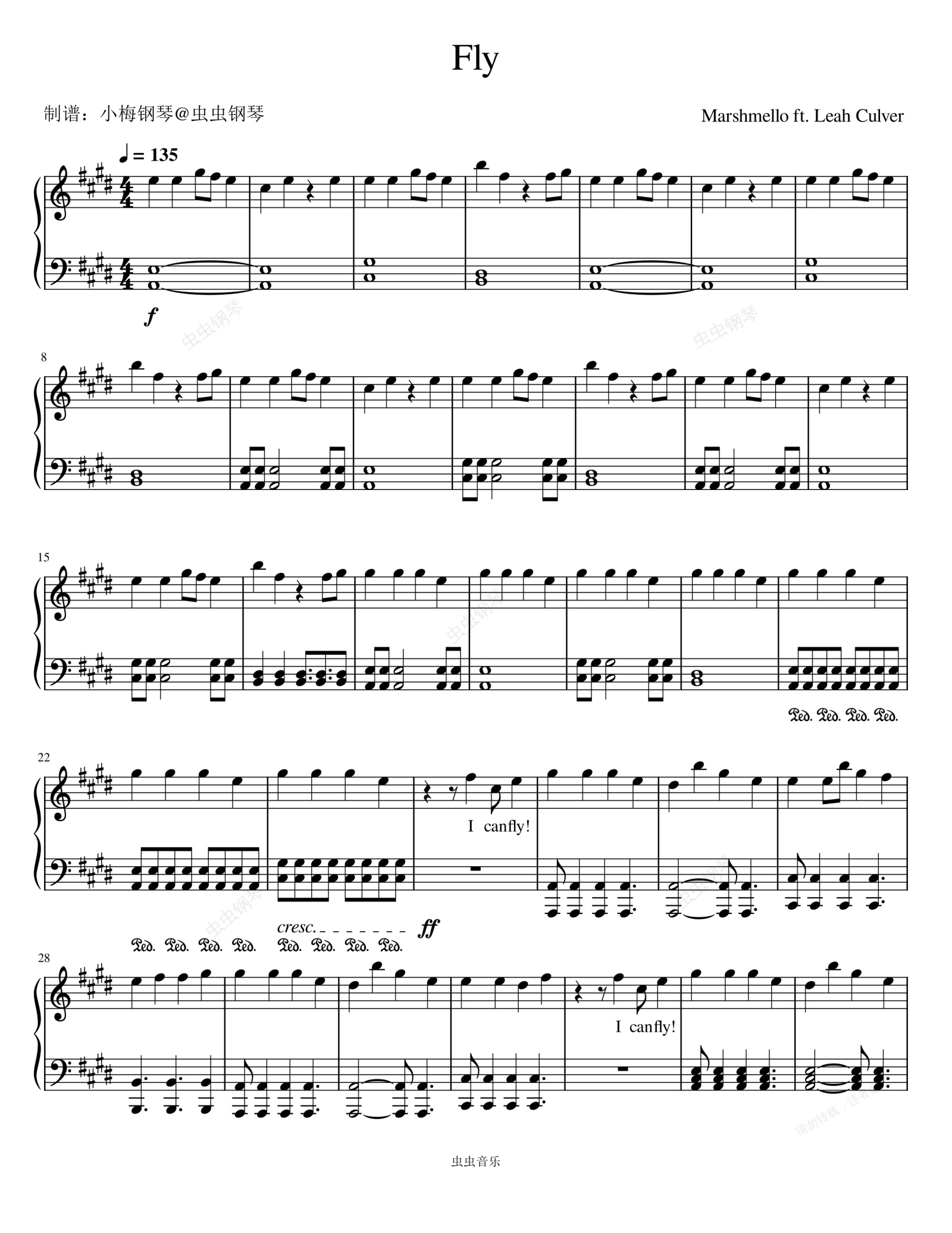 钢琴谱:Fly - Marshmello (棉花糖)/Leah Culver