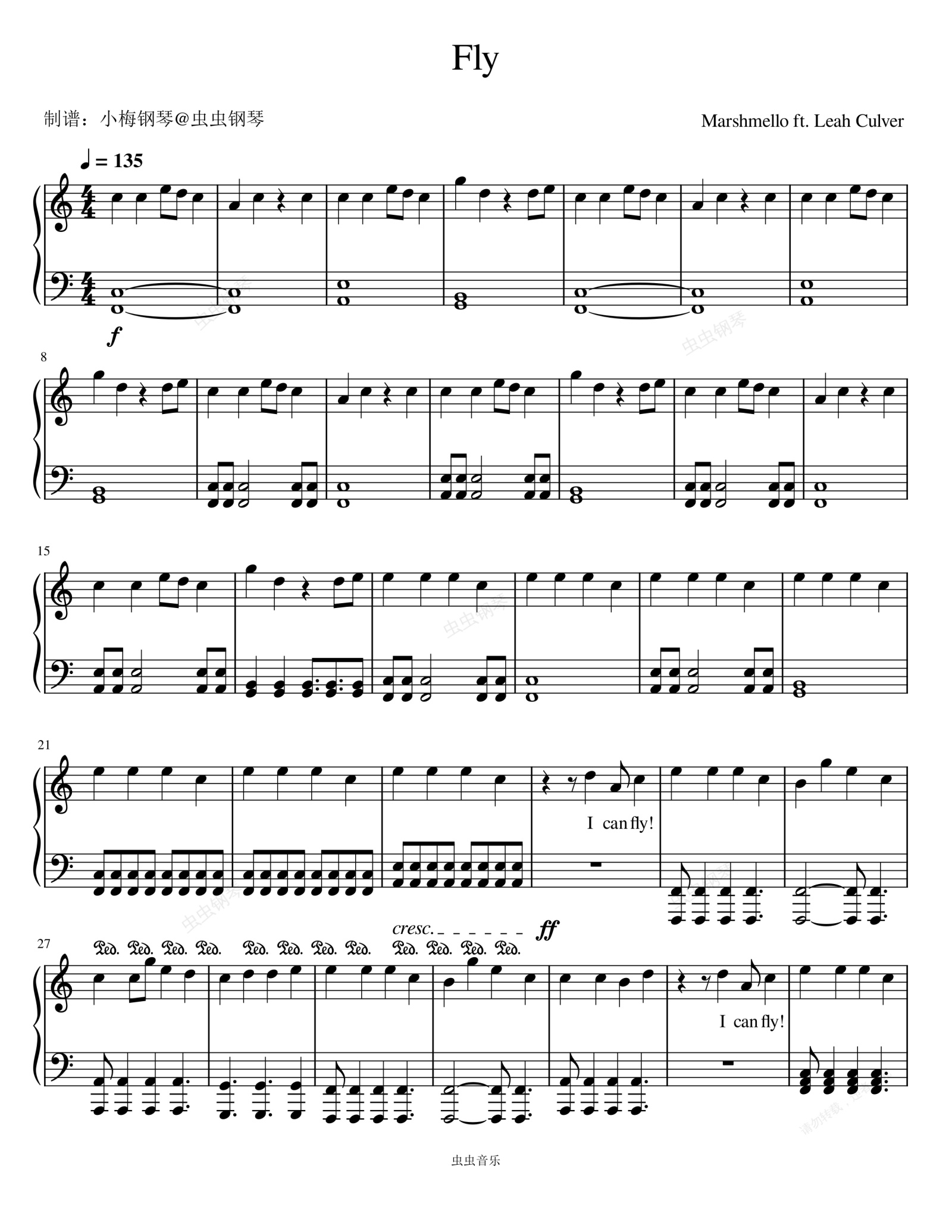 钢琴谱:Fly - Marshmello (棉花糖)/Leah Culver