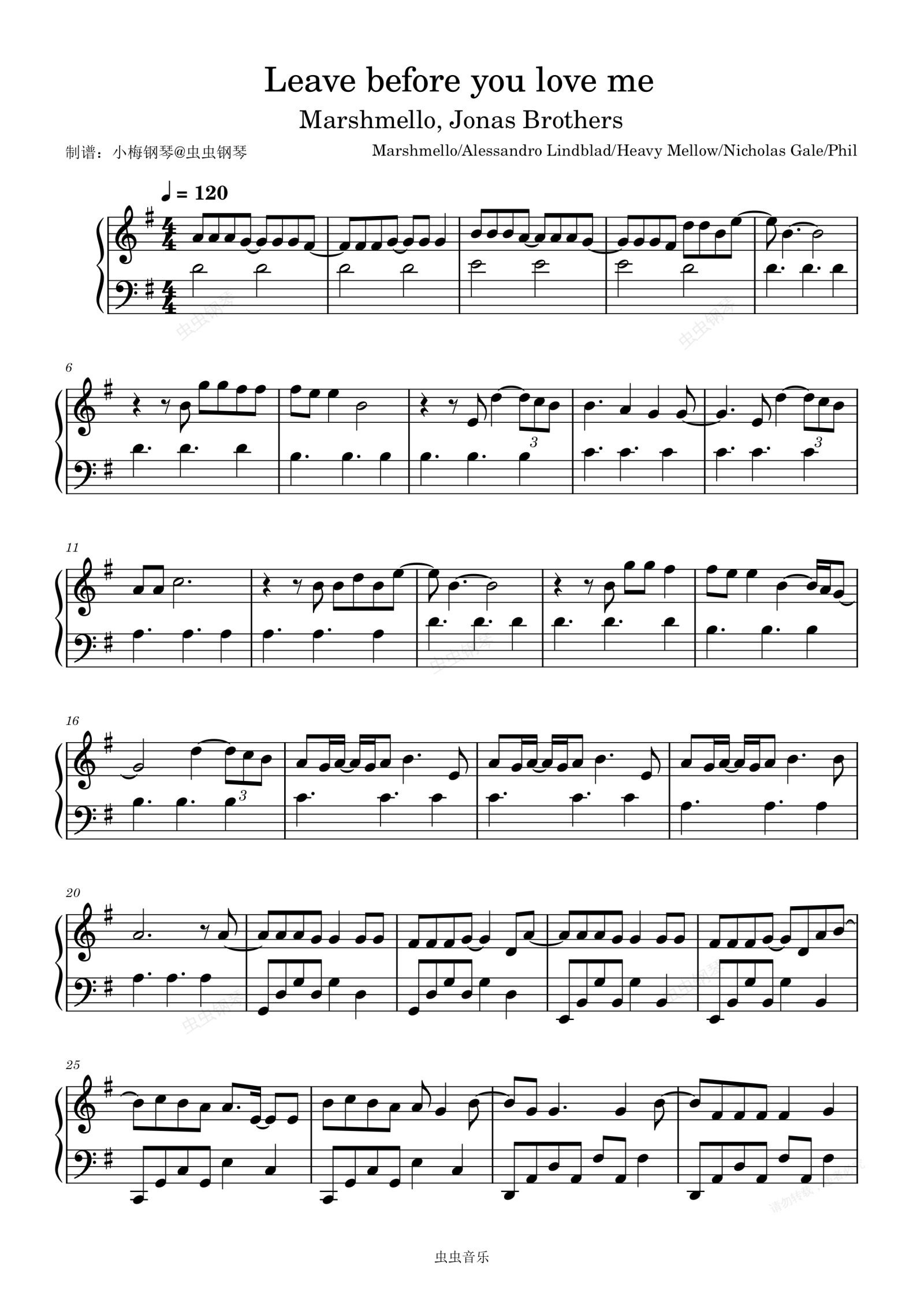 钢琴谱:Leave Before You Love Me - Marshmello (棉花糖)/Jonas Brothers (乔纳斯兄弟)