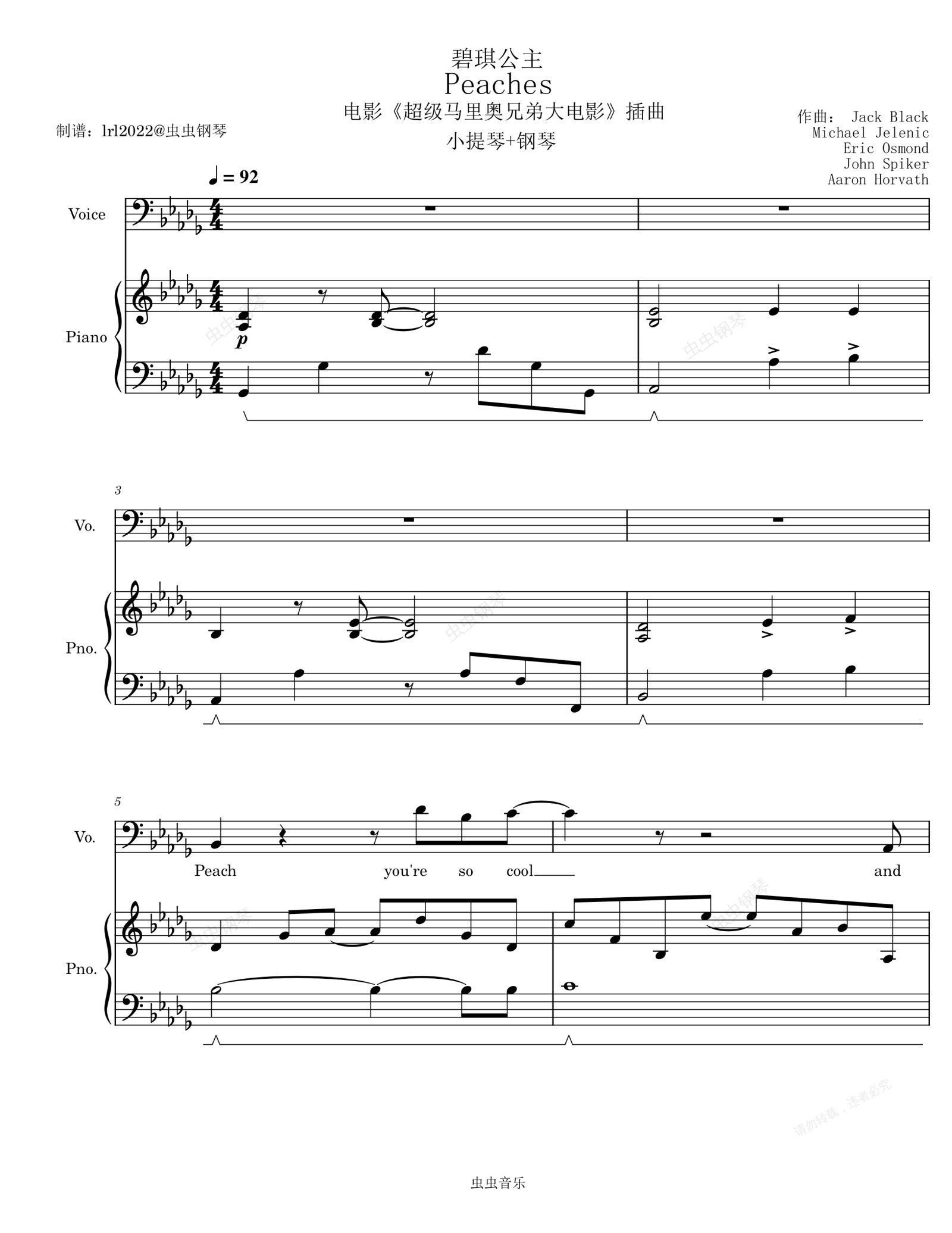 钢琴谱:Peaches -《碧琪公主》-电影《超级马里奥兄弟大电影》插曲 - 小提琴+钢琴