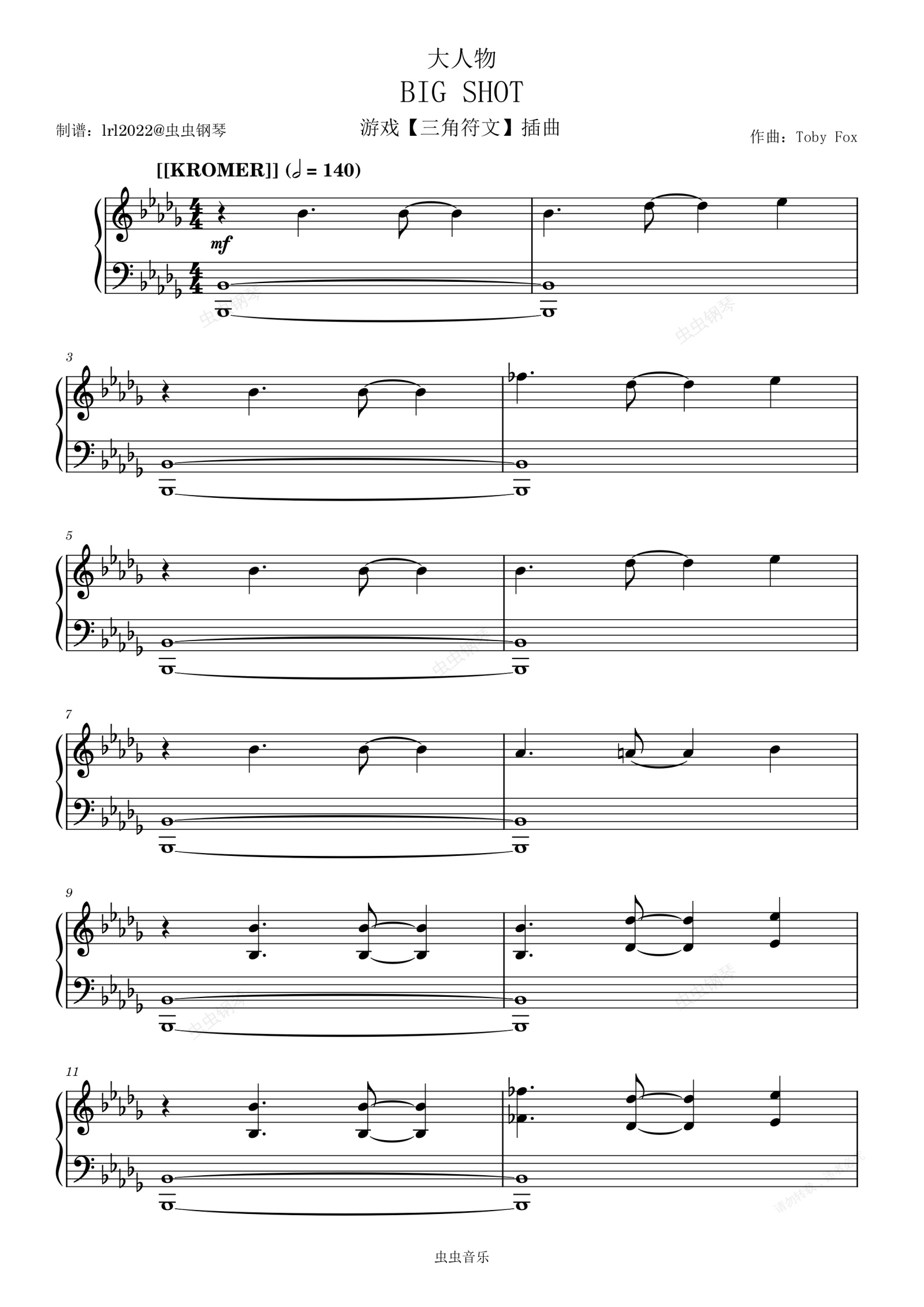钢琴谱:BIG SHOT -《大人物》- 游戏【三角符文】第二章插曲 - 钢琴独奏 - Deltarune: Chapter 2