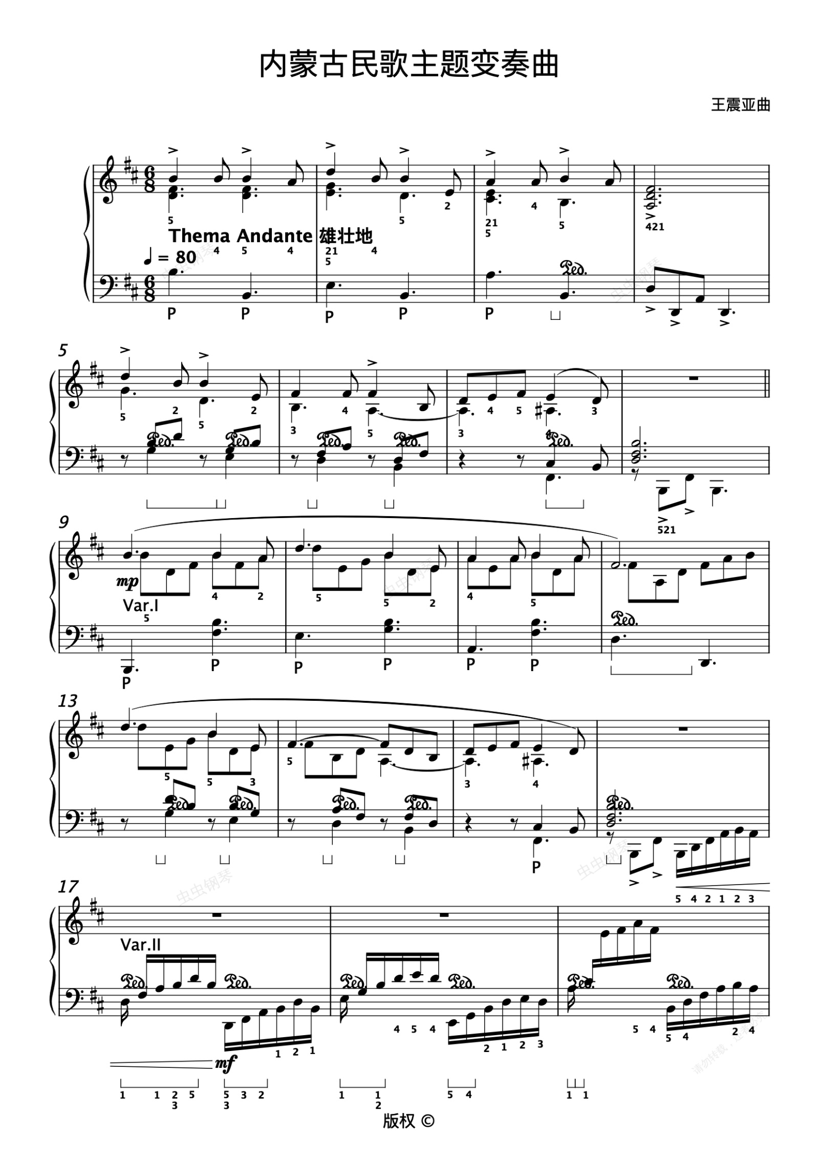 钢琴谱:10.内蒙古民歌主题变奏曲