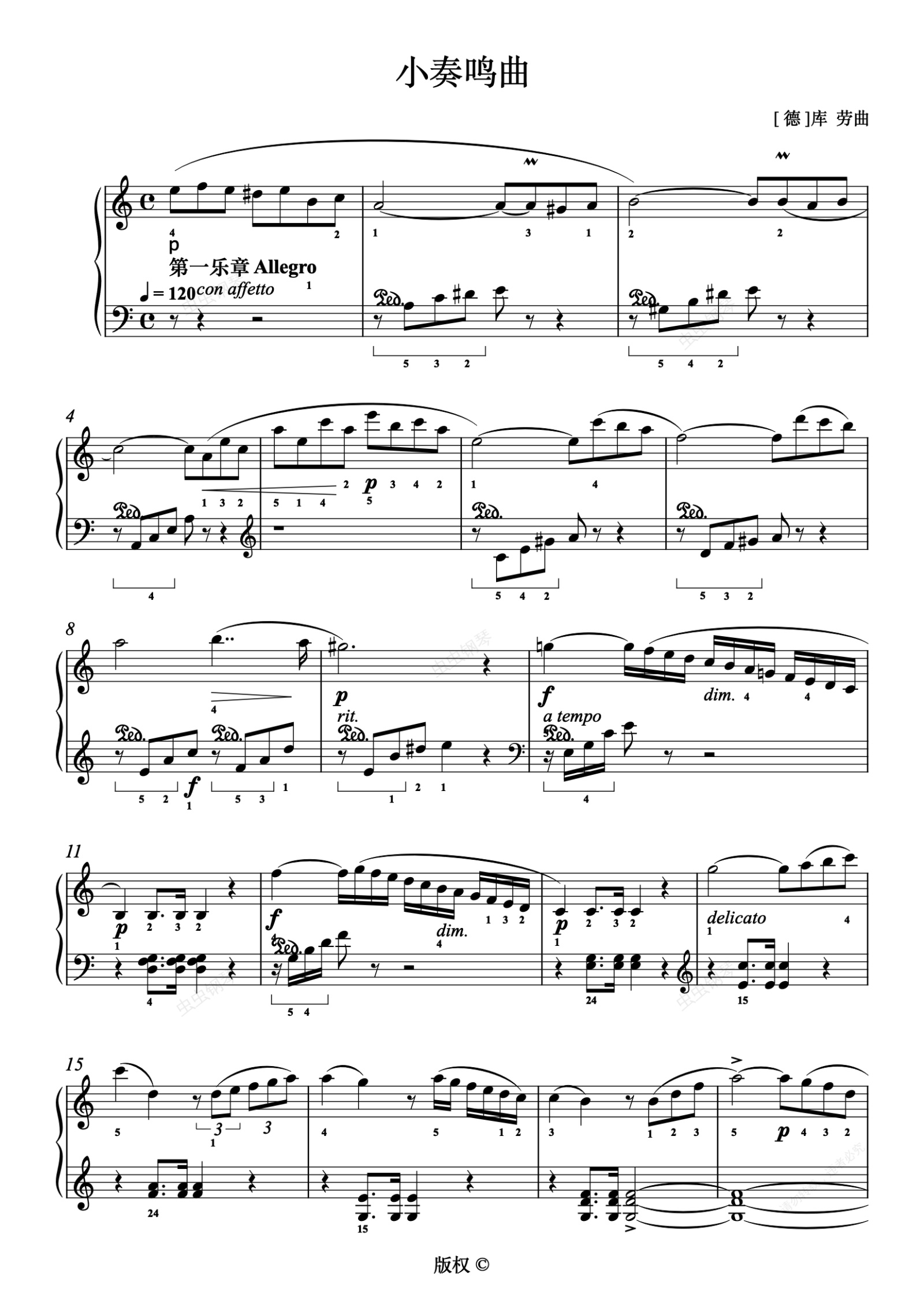 钢琴谱:22-1.小奏鸣曲(Op.88 No.3)第一乐章-库劳
