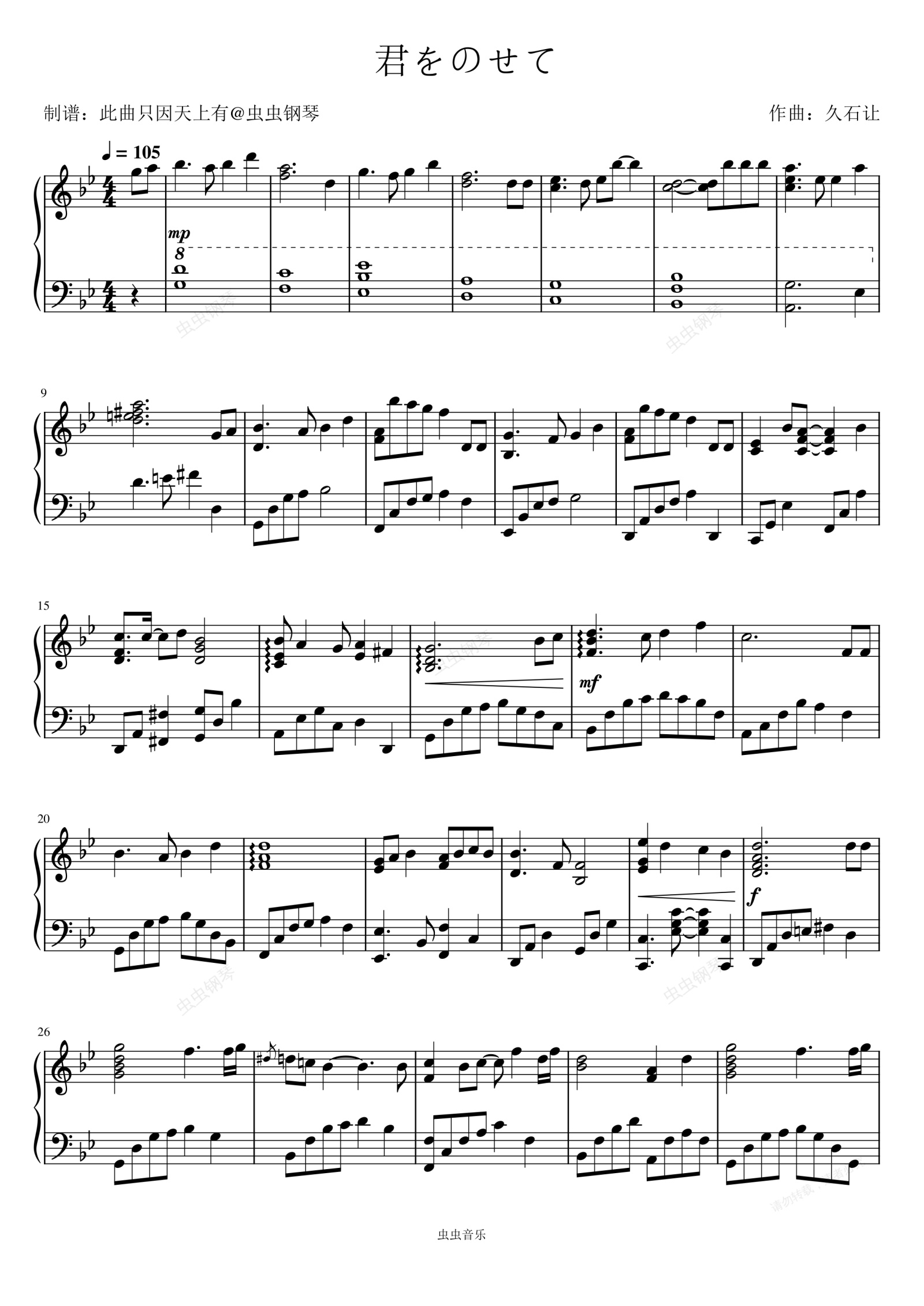 钢琴谱:天空之城君をのせて-久石让