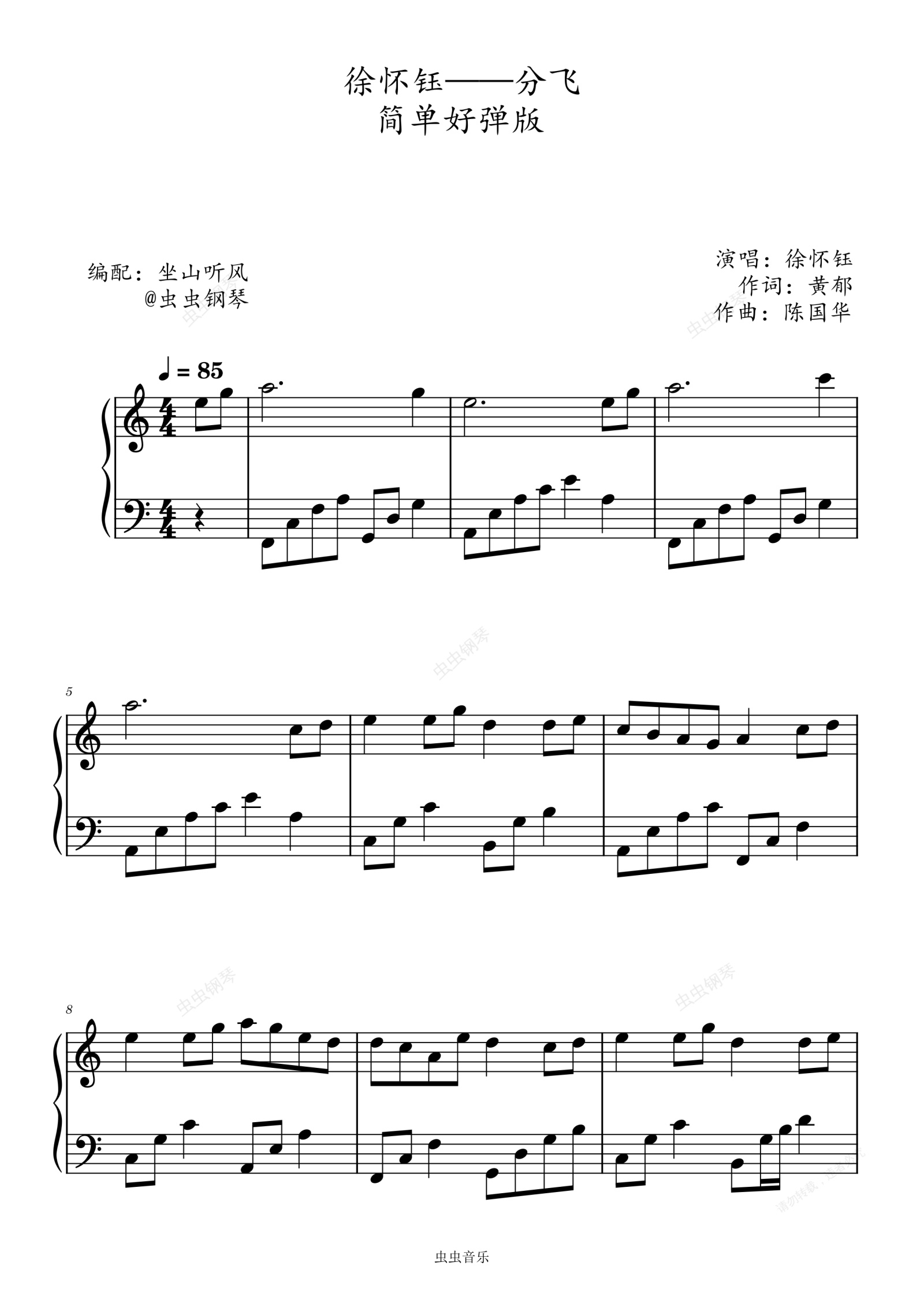 钢琴谱:徐怀钰《分飞》——简易好弹版