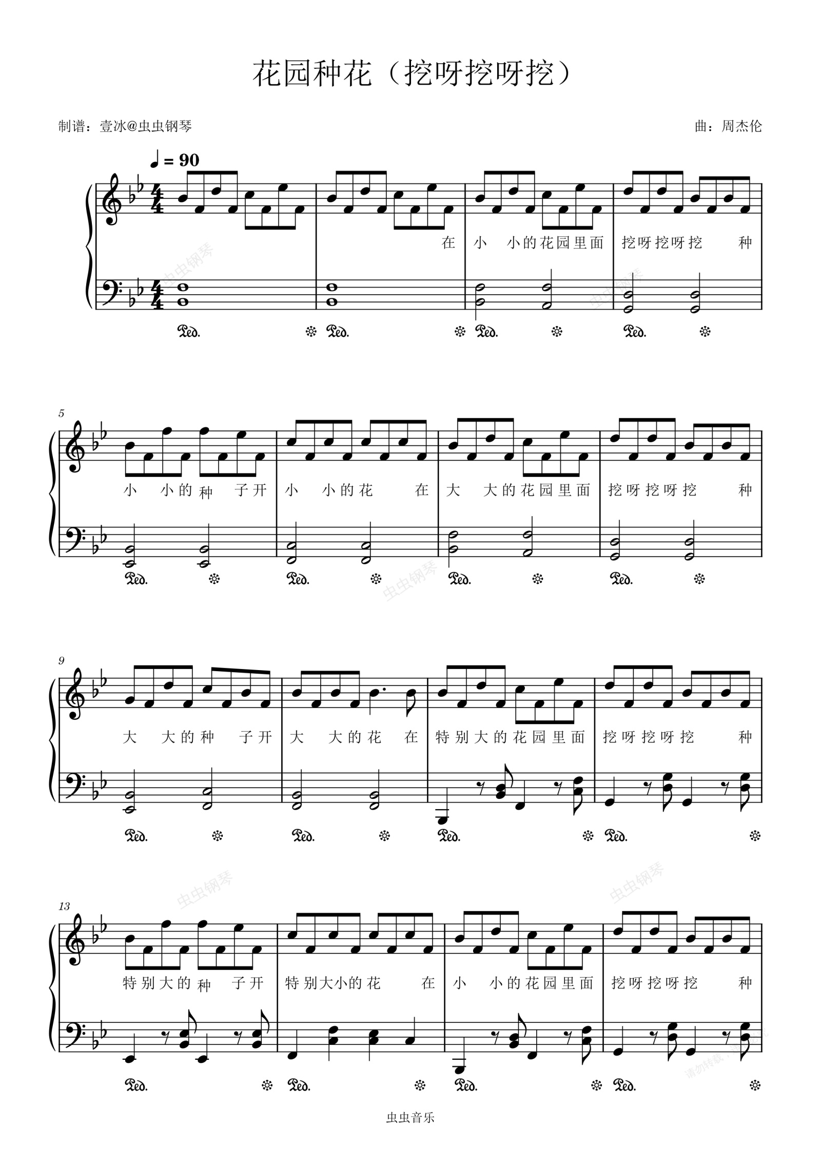 钢琴谱:花园种花(挖呀挖呀挖)-原调
