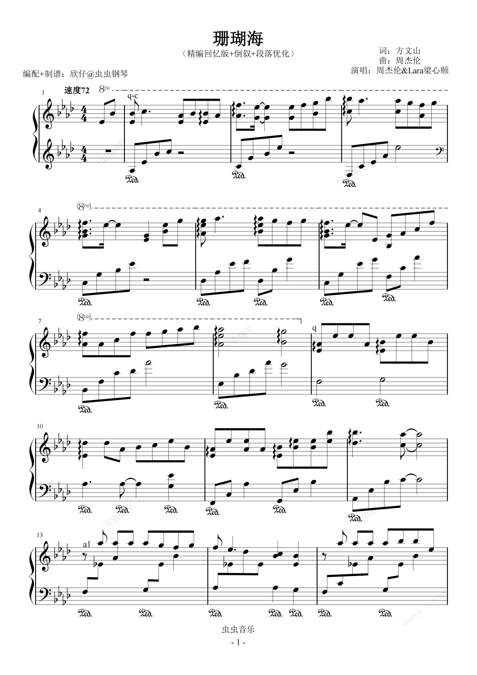 钢琴谱:降A-《珊瑚海》周杰伦&梁心颐(精编回忆+倒叙+段落优化)