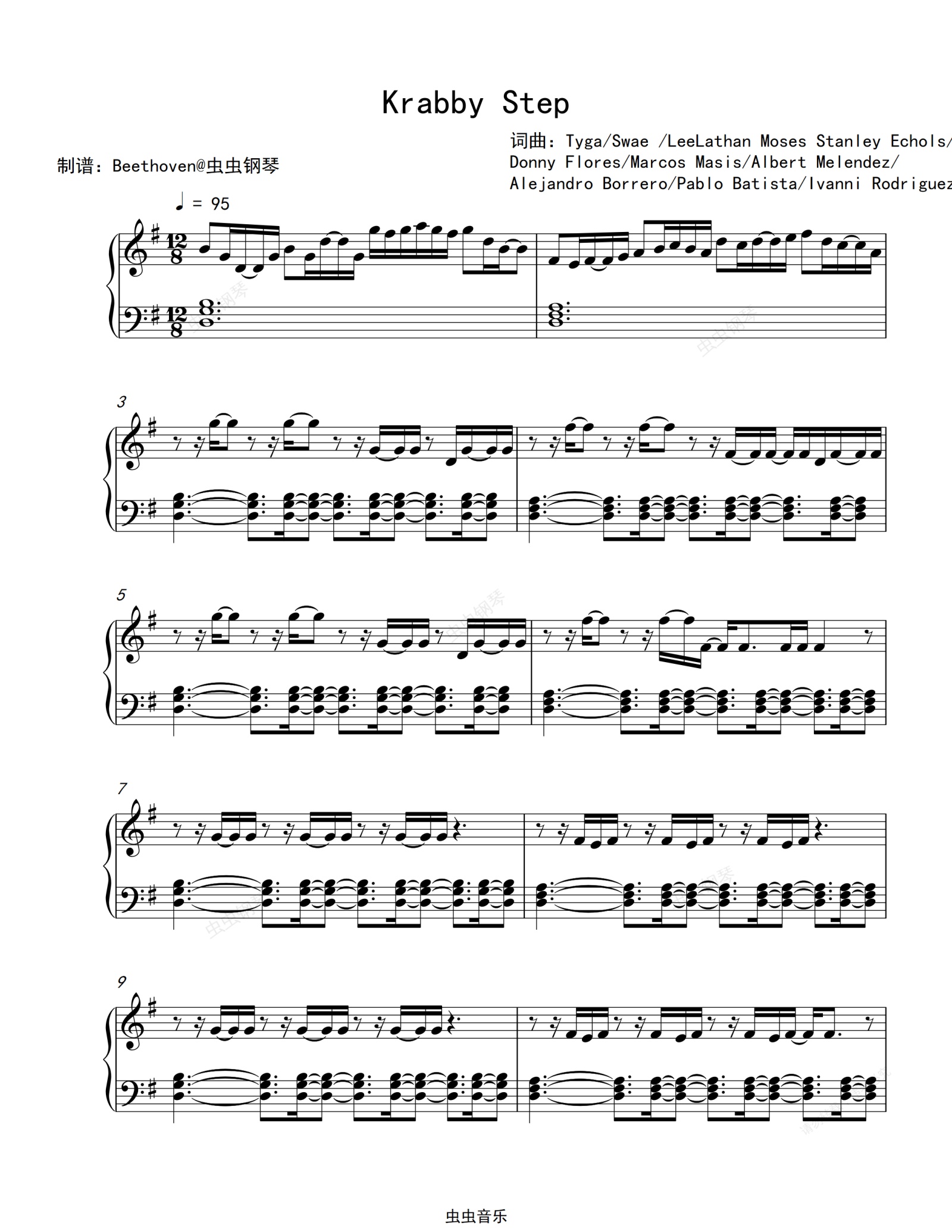 钢琴谱:Krabby Step-海绵宝宝营救大冒险OST-Swae Lee Tyga Lil Mosey