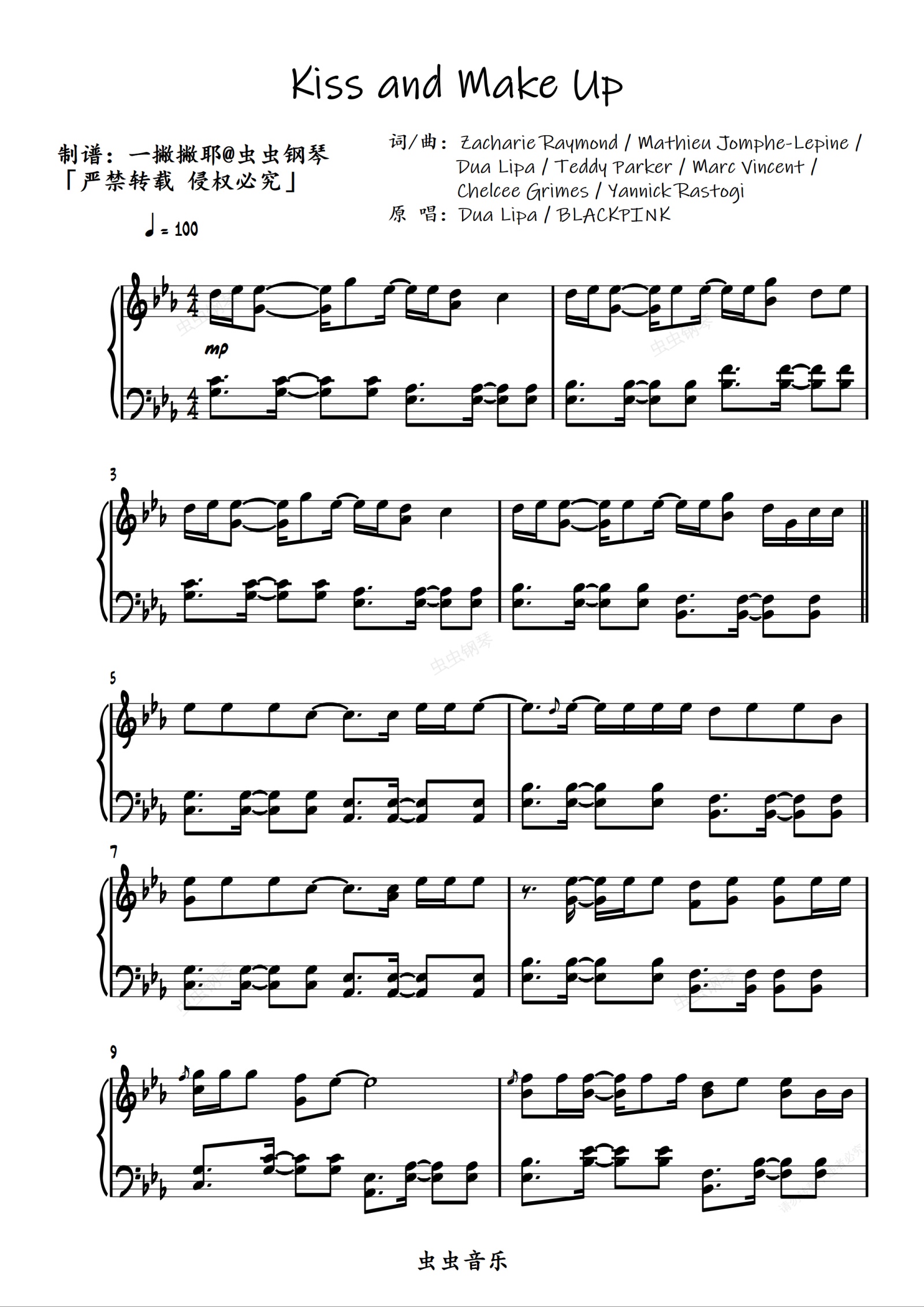 钢琴谱:绝美还原编配《 Kiss and Make Up》Dua Lipa / BLACKPINK「一撇撇耶」
