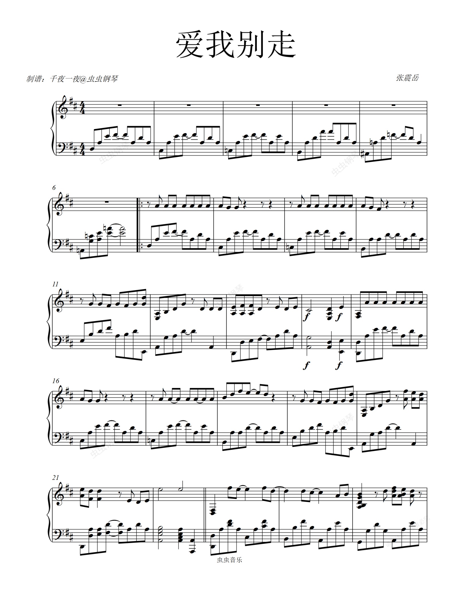 钢琴谱:张震岳《爱我别走》,1998年创作的神曲!