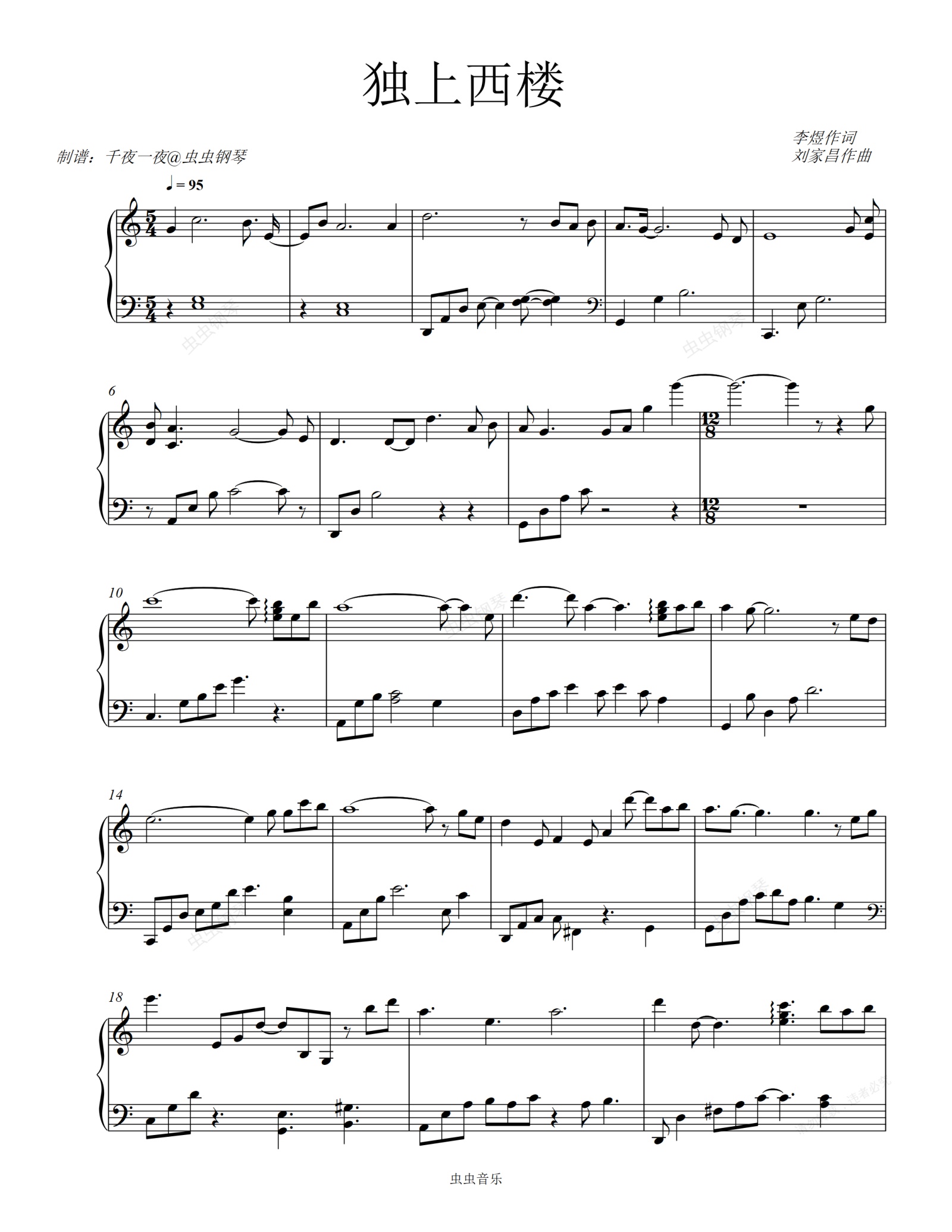 钢琴谱:邓丽君的《独上西楼》经典老歌旋律悠扬娓娓动听,好听