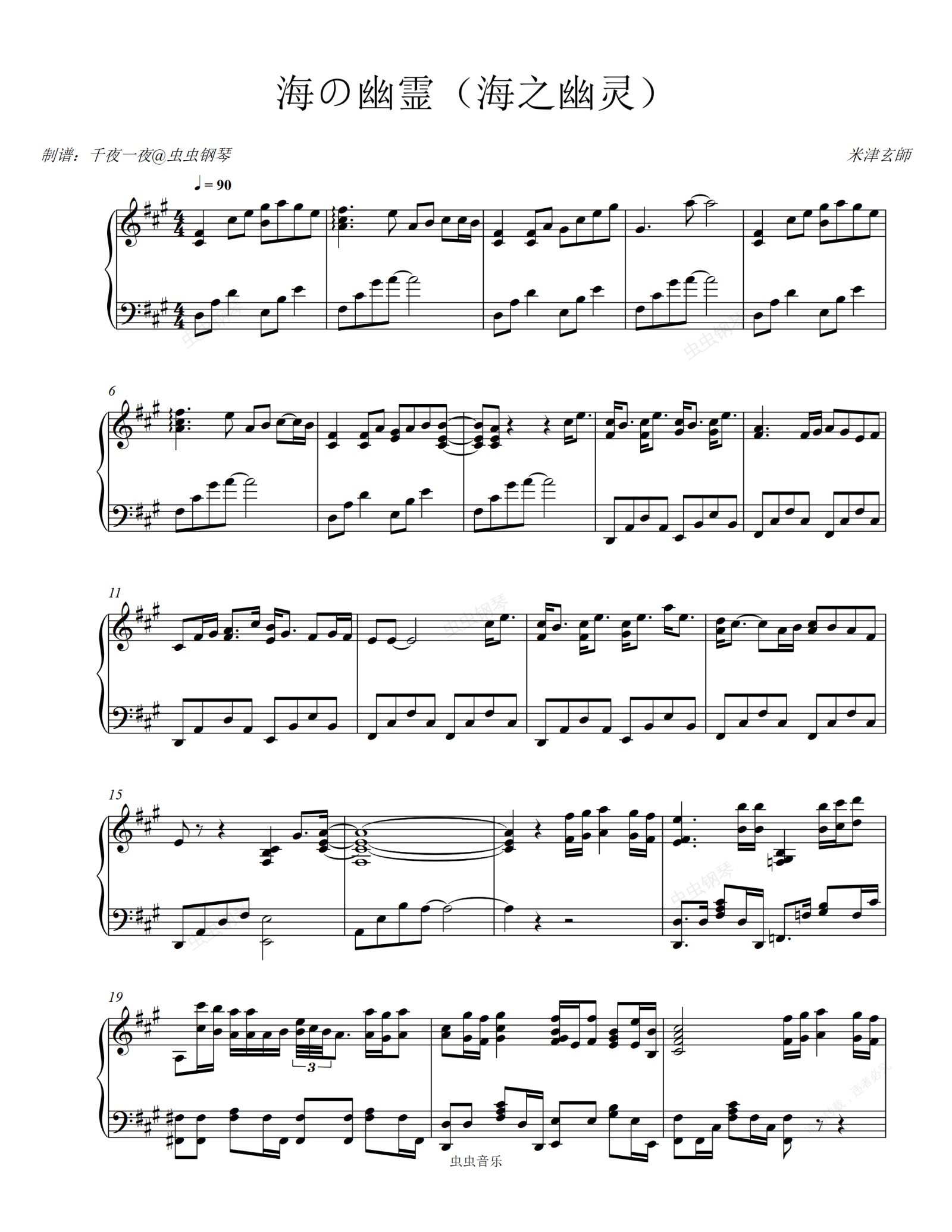 钢琴谱:米津玄師 「海の幽霊」《海兽之子》电影主题曲