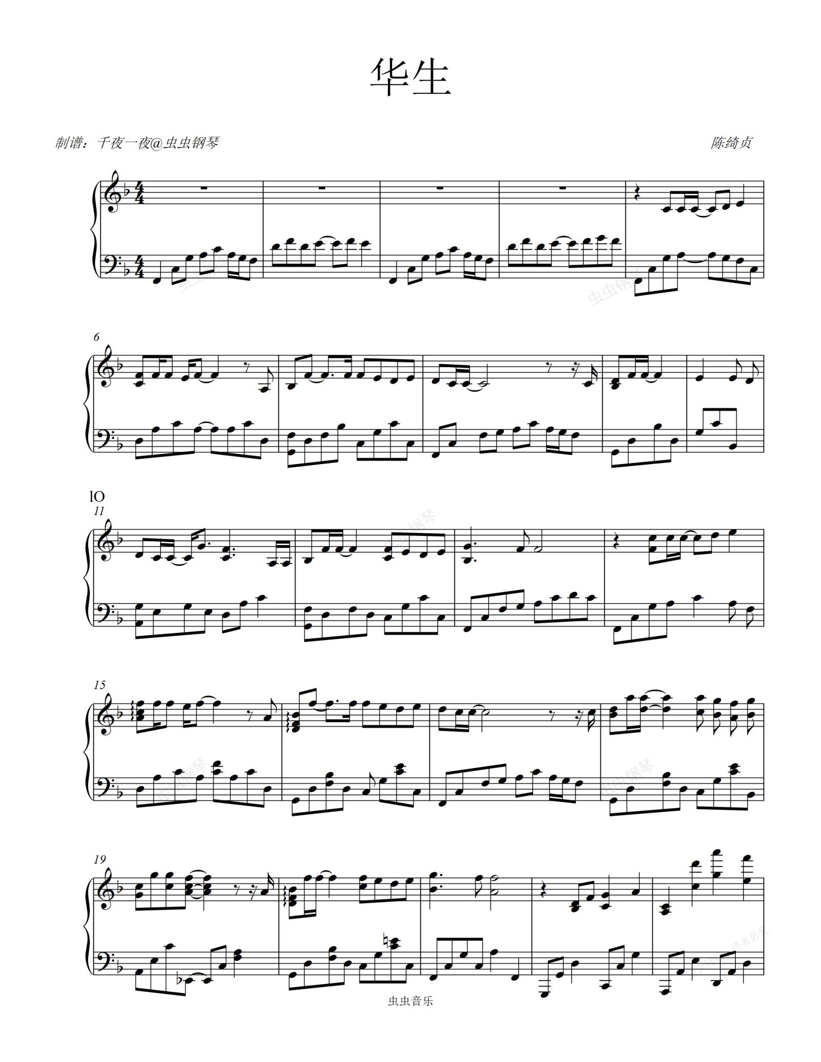 钢琴谱:【华生】— 陈绮贞 | 献给你最好的盆友