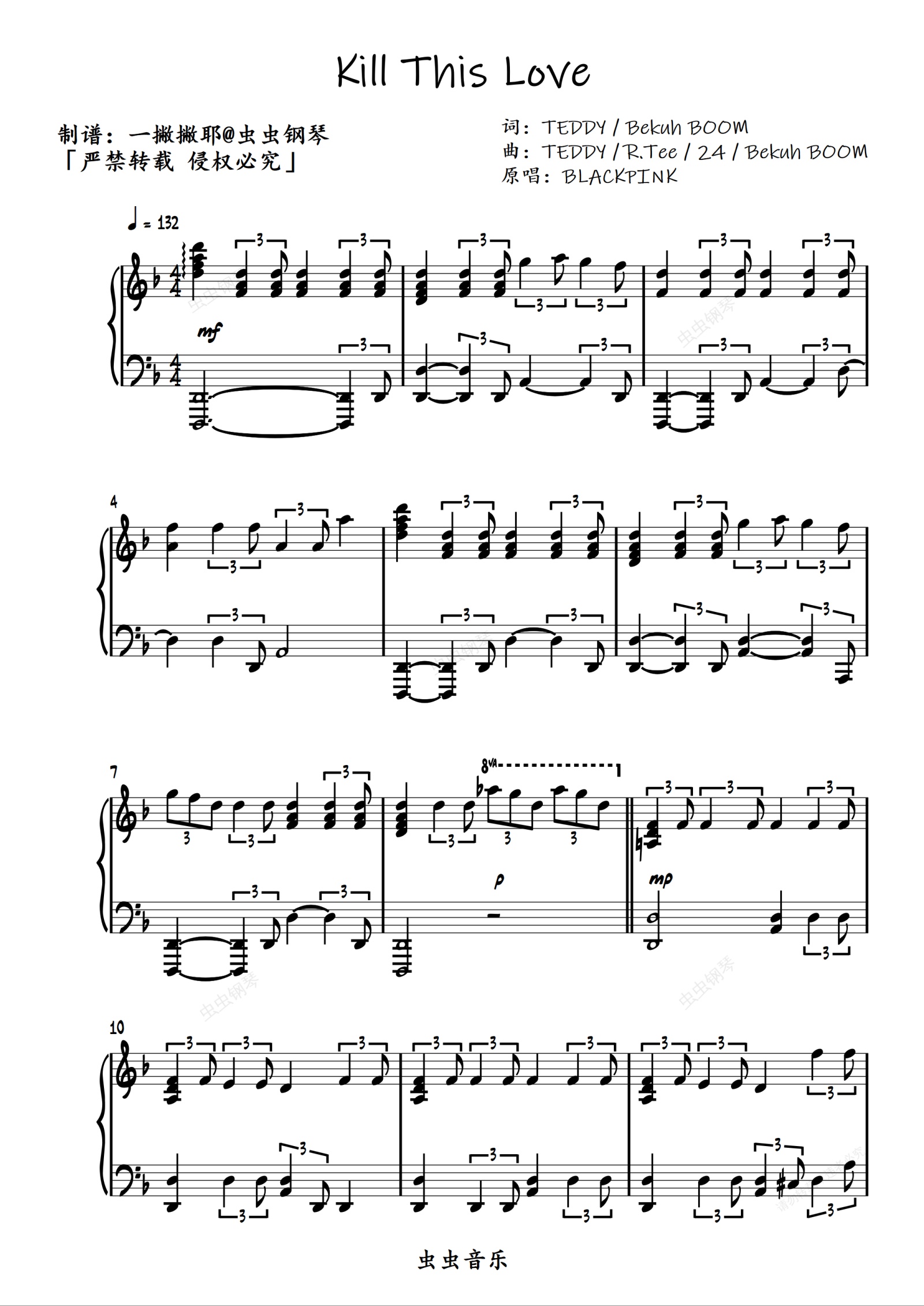 钢琴谱:绝美还原编配《Kill This Love》BLACKPINK「一撇撇耶」