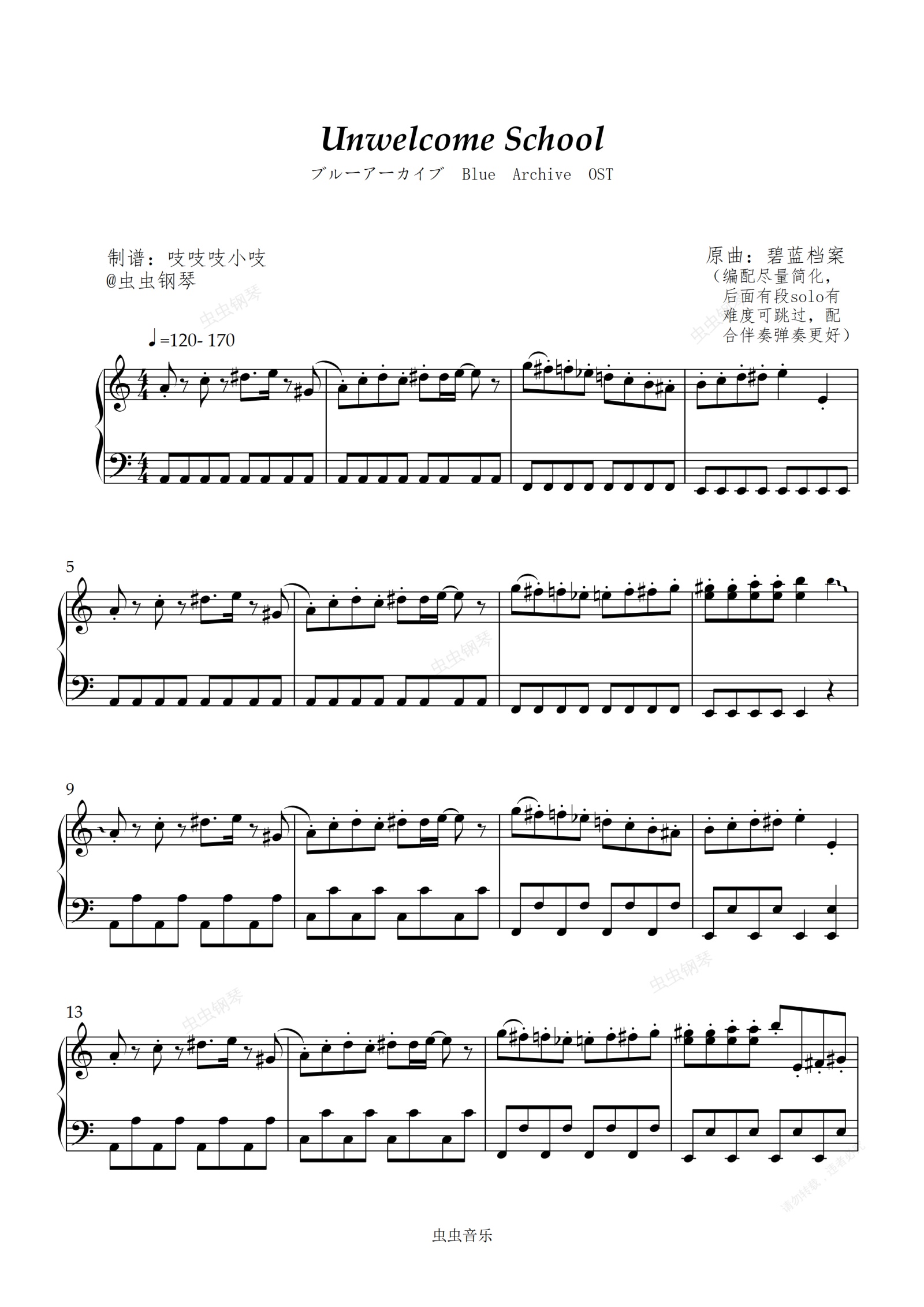 钢琴谱:Unwelcome School 银行不妙曲 ブルーアーカイブ Blue Archive OST