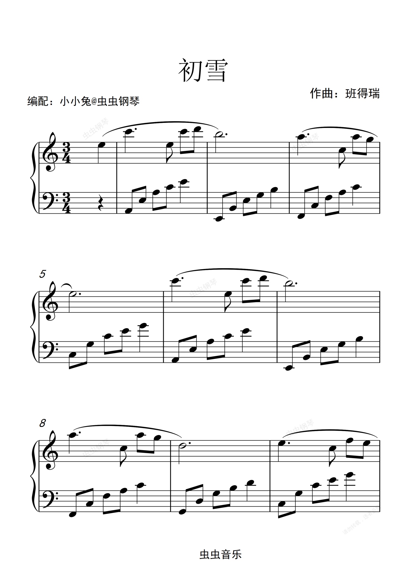 钢琴谱:初雪 完整 C调简易 班得瑞