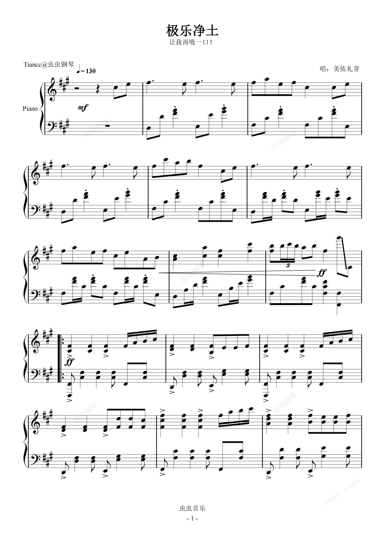 钢琴谱:《极乐净土》那个女人她回来了!让我再吸一口!