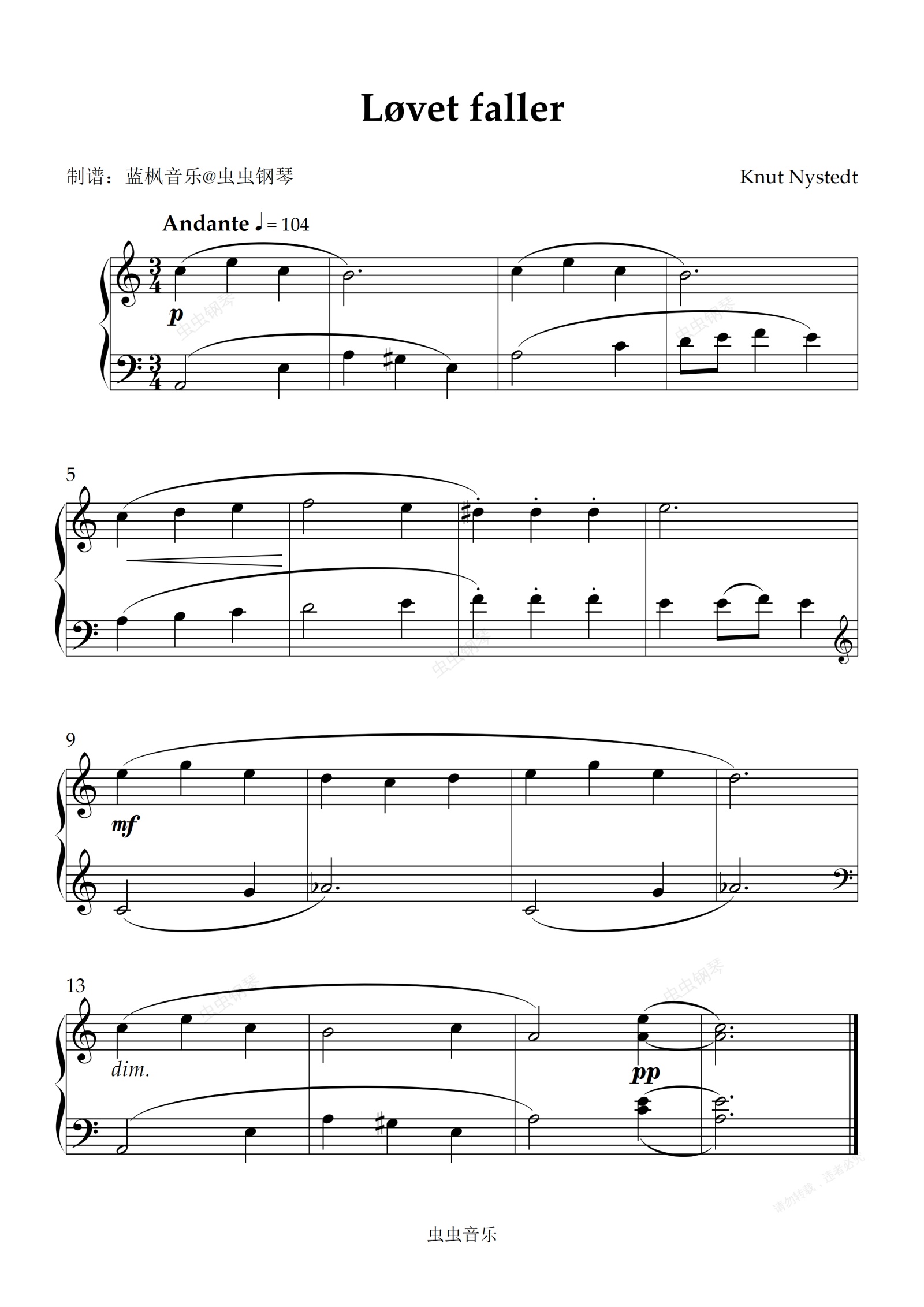 钢琴谱:Løvet faller